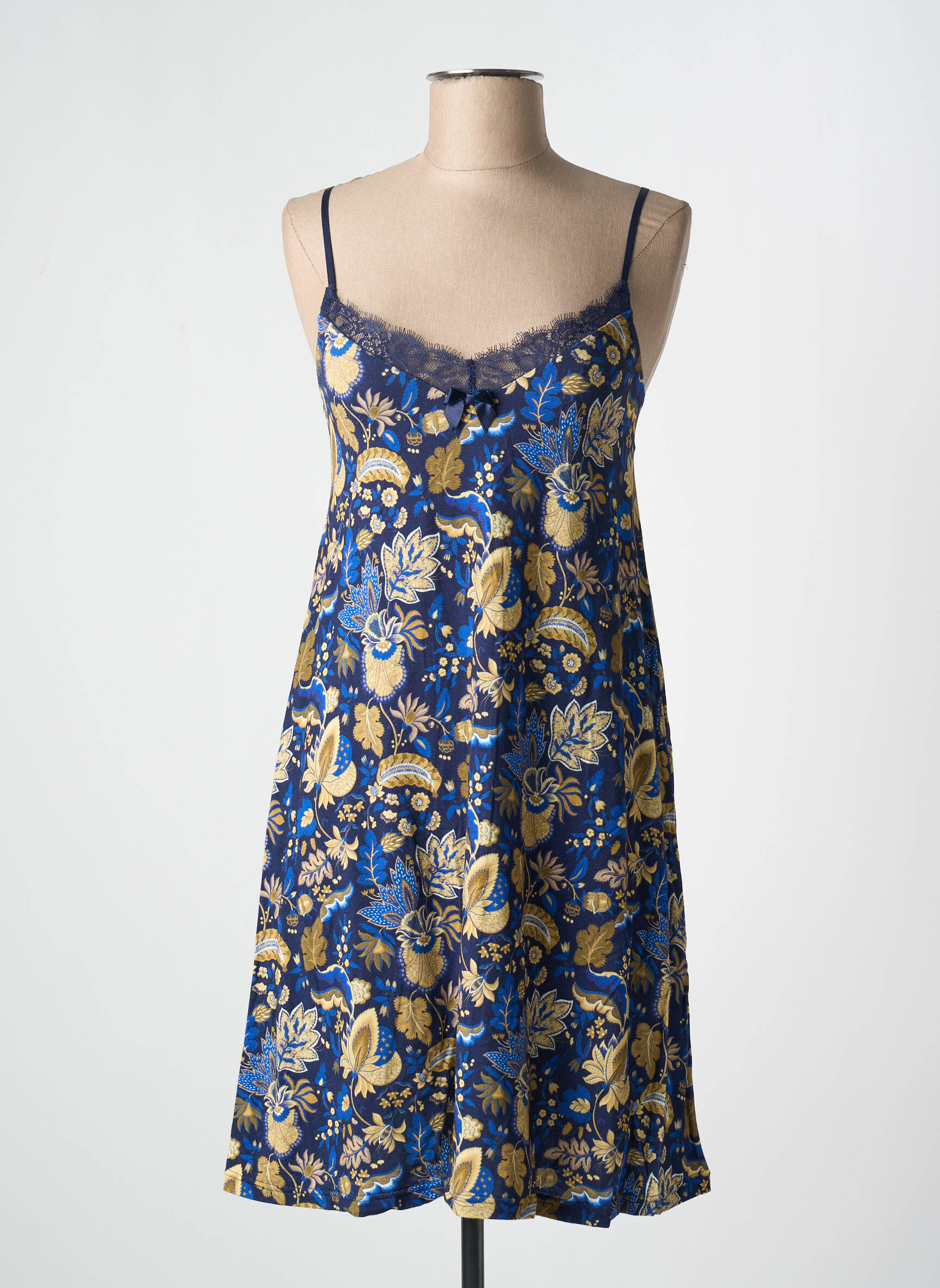 Profitez d’un bon plan irrésistible avec cette nuisette ANTIGEL pour femme, qui combine charme et douceur à prix mini. Dotée d’un imprimé floral raffiné aux motifs jaunes et bleu profond, cette pièce séduit par ses détails de dentelle délicate à l’encolure et ses fines bretelles qui soulignent subtilement la silhouette. C’est l’occasion parfaite de vous offrir une touche d’élégance et de confort sans vous ruiner grâce à notre sélection déstockée de grandes marques.