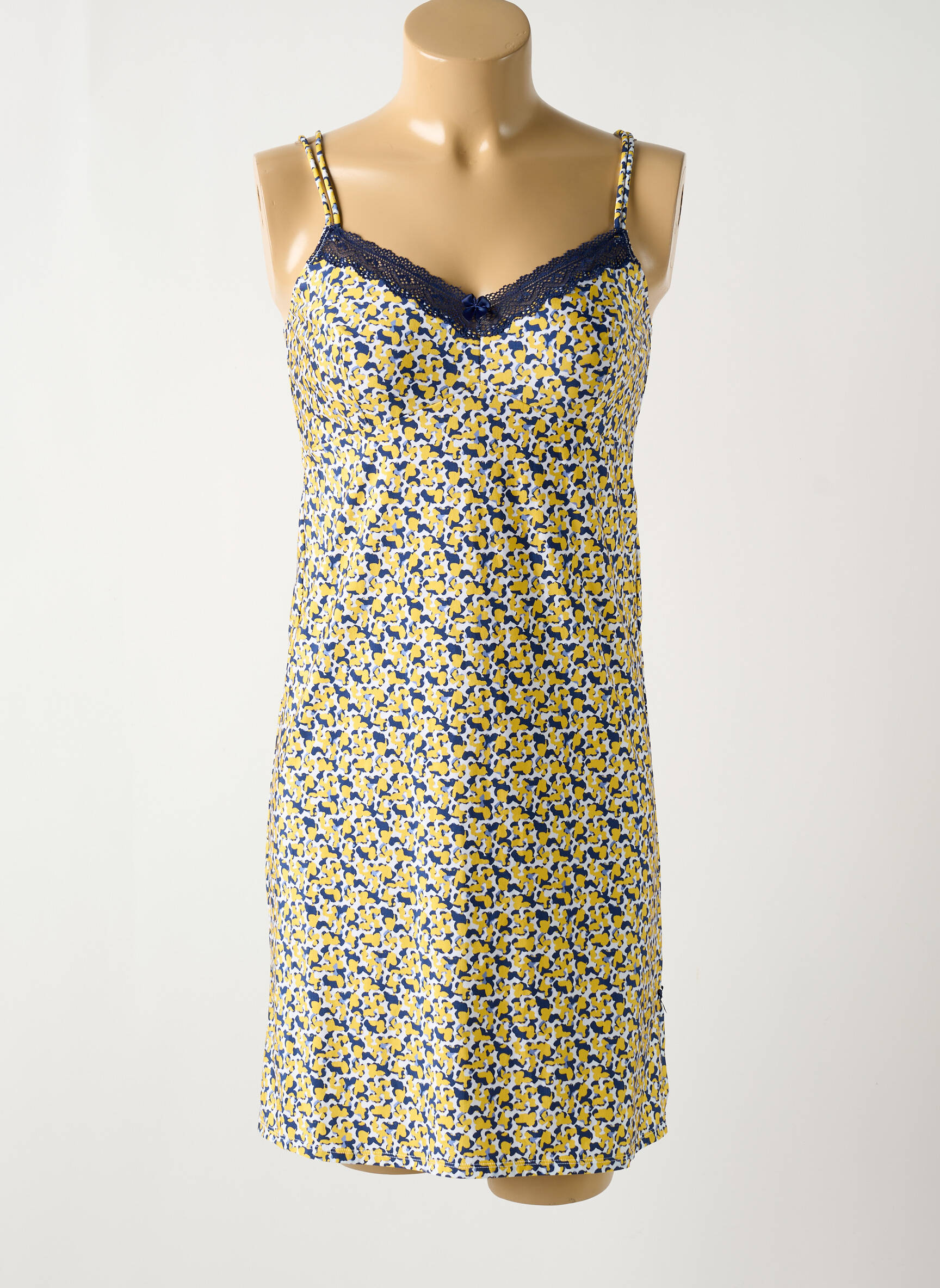 Profitez d’un bon plan irrésistible avec cette nuisette ESCORT pour femme aux motifs fleuris jaune et bleu, soulignée par une délicate dentelle contrastée sur le décolleté. Légère et confortable, elle offre une allure féminine tout en étant accessible à petit prix, parfaite pour renouveler sa garde-robe de nuit sans se ruiner.