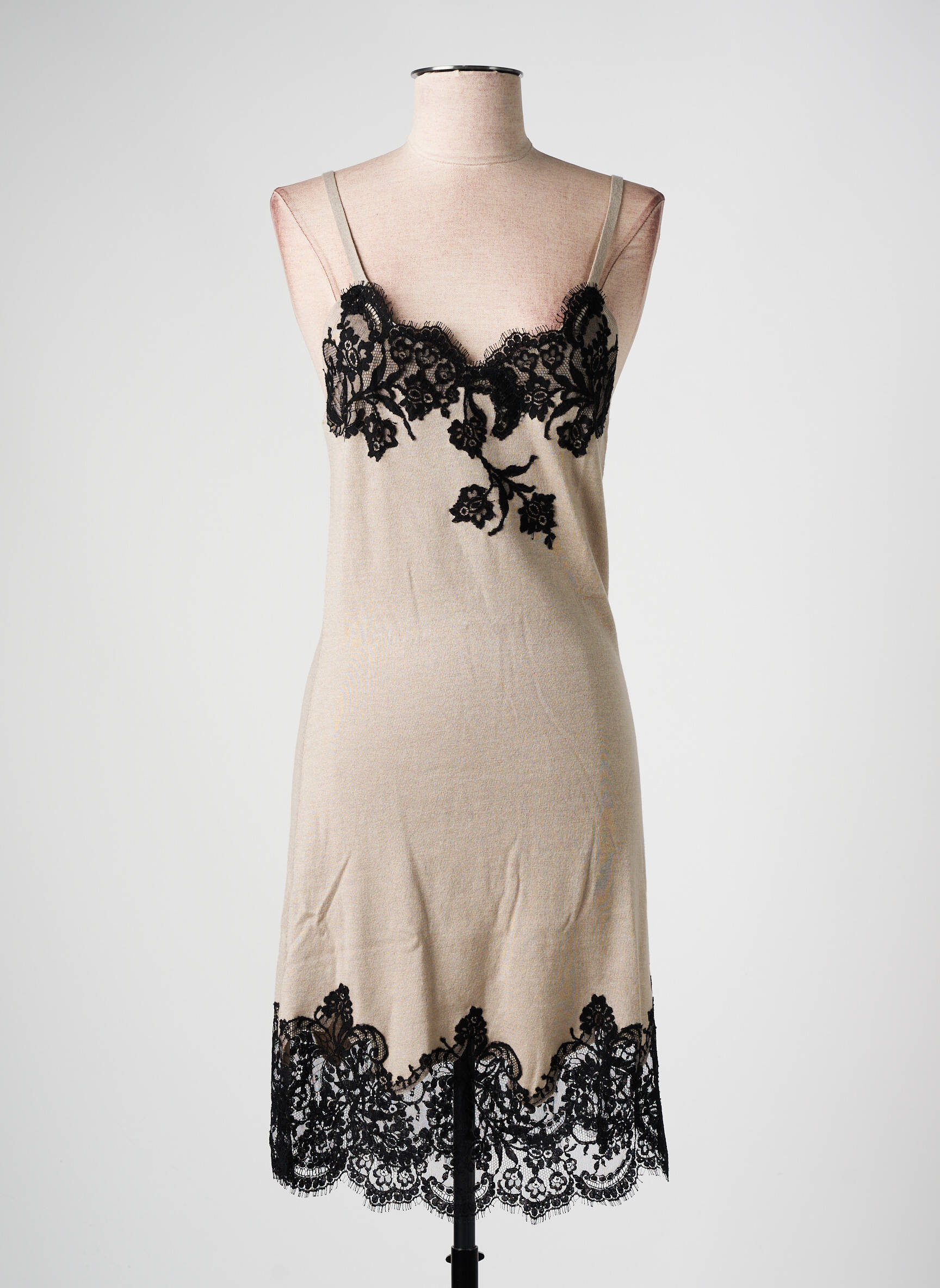 Offrez-vous une pièce d’exception à prix doux avec cette nuisette MARJOLAINE, dont l’association du beige délicat et de la dentelle florale noire apporte une élégance sophistiquée. La finesse de ses bretelles et les finitions en dentelle, aussi bien sur le décolleté que sur le bas, soulignent la féminité tout en assurant un confort irrésistible à petit prix, pour un look raffiné accessible sans se ruiner.