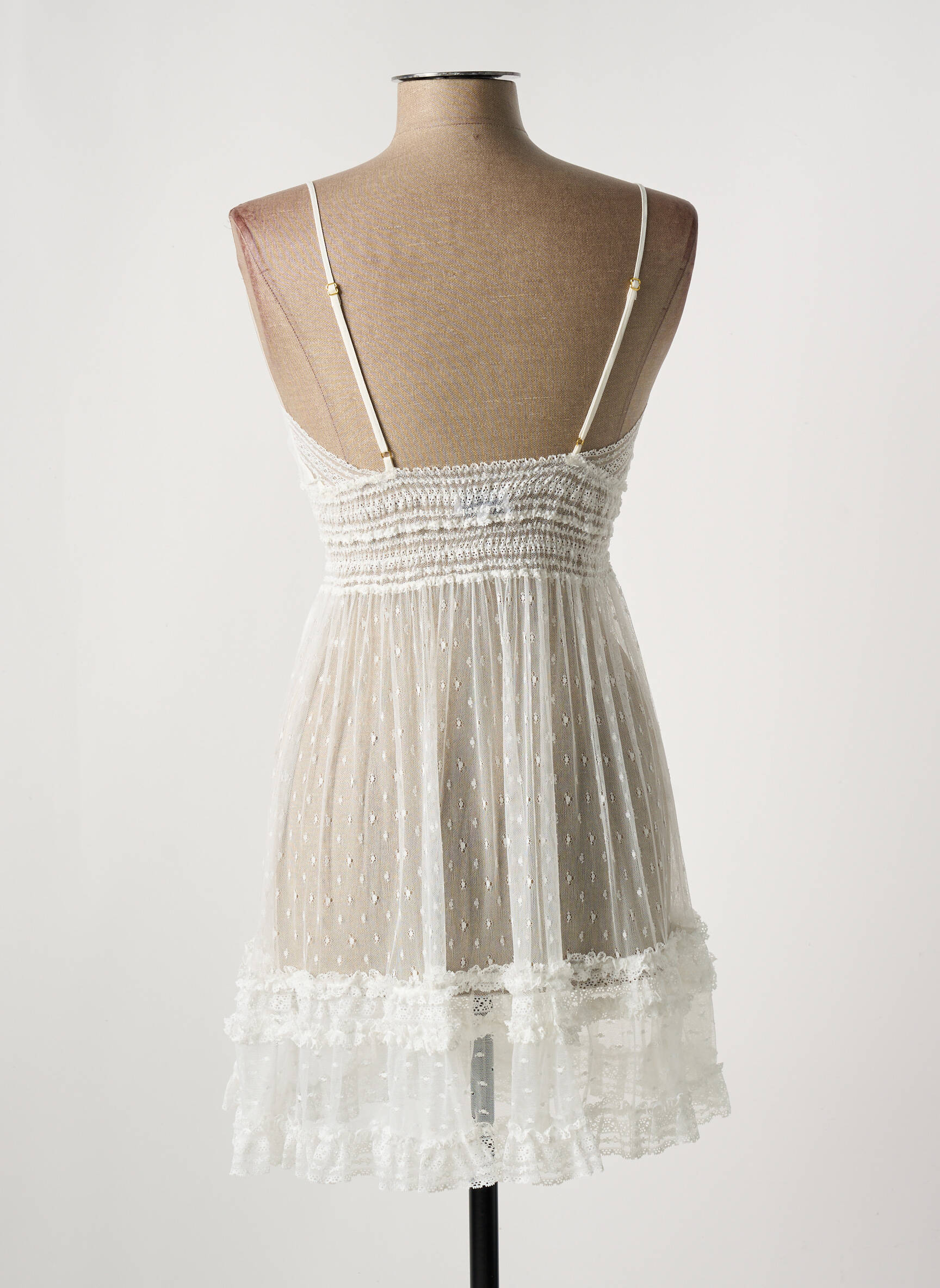 Profitez d’un vrai bon plan avec cette nuisette MARJOLAINE, un modèle raffiné à petit prix, idéal pour se faire plaisir sans se ruiner. Son tissu délicatement transparent est mis en valeur par des motifs à pois en relief et des volants subtils en bas de la pièce, tandis que la coupe légère offre une silhouette romantique et féminine. Les fines bretelles et le décolleté travaillé dessinent un look élégant et sensuel, parfait pour sublimer vos soirées tout en réalisant des économies grâce à notre sélection déstockage.