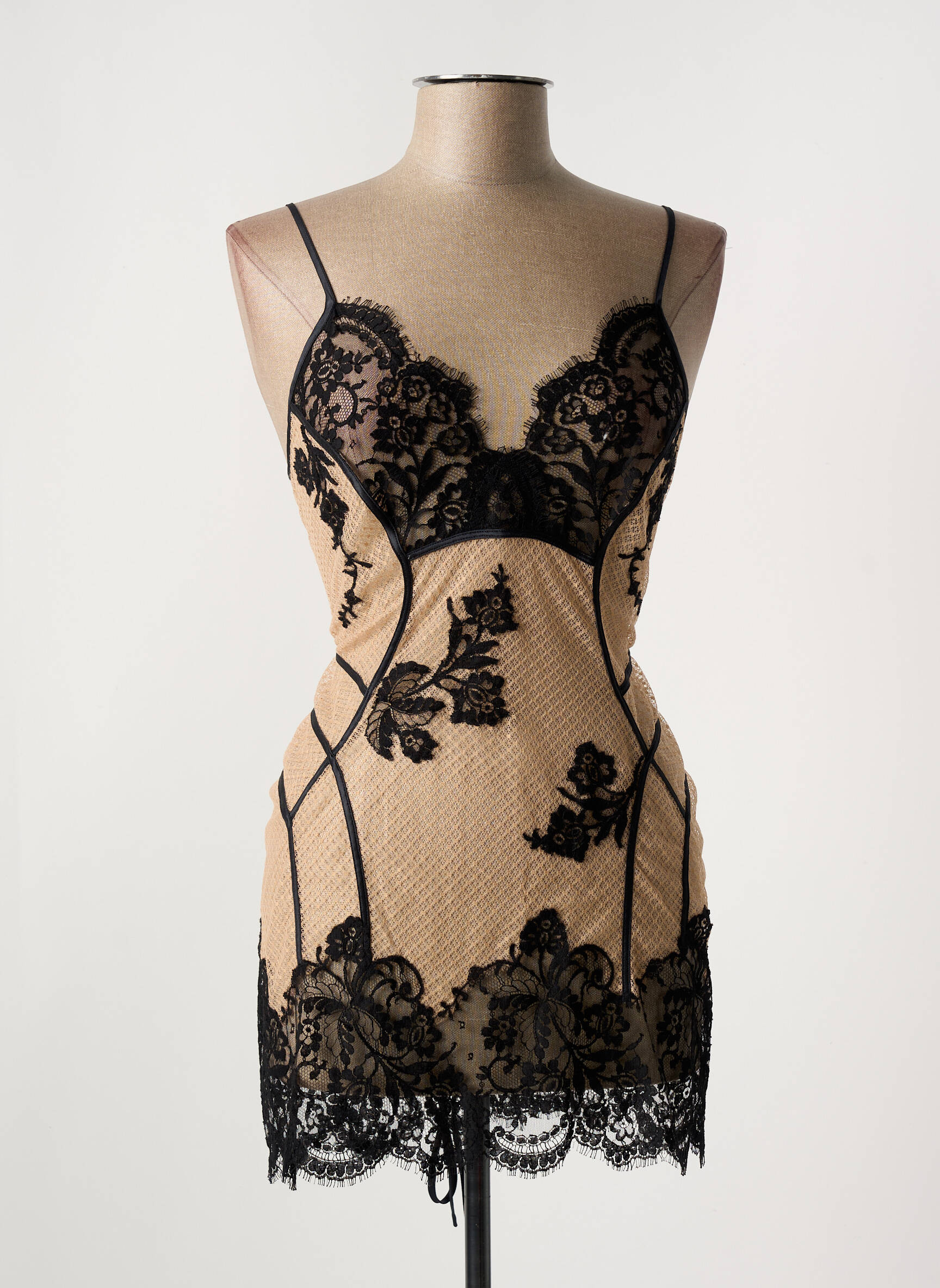 Craquez pour un bon plan avec cette nuisette MARJOLAINE, un modèle raffiné qui allie élégance et sensualité à prix tout doux. Sa délicate dentelle noire florale contraste avec un fond nude pour un effet seconde peau irrésistible, tandis que la coupe épouse parfaitement les courbes et sublime la silhouette. Un incontournable glamour à petit prix, idéal pour se faire plaisir ou offrir sans se ruiner.
