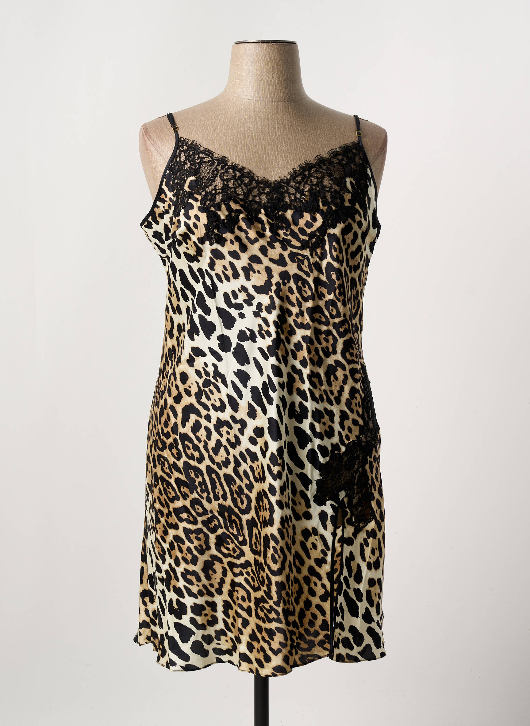 Craquez pour cette nuisette MARJOLAINE à prix mini, parfaite pour ajouter une touche de glamour sauvage à votre dressing de nuit sans vous ruiner. Son imprimé léopard audacieux s’associe élégamment à de délicates finitions en dentelle noire apportant une note de sensualité tout en subtilité, idéale pour celles qui recherchent une pièce raffinée et tendance à prix tout doux.