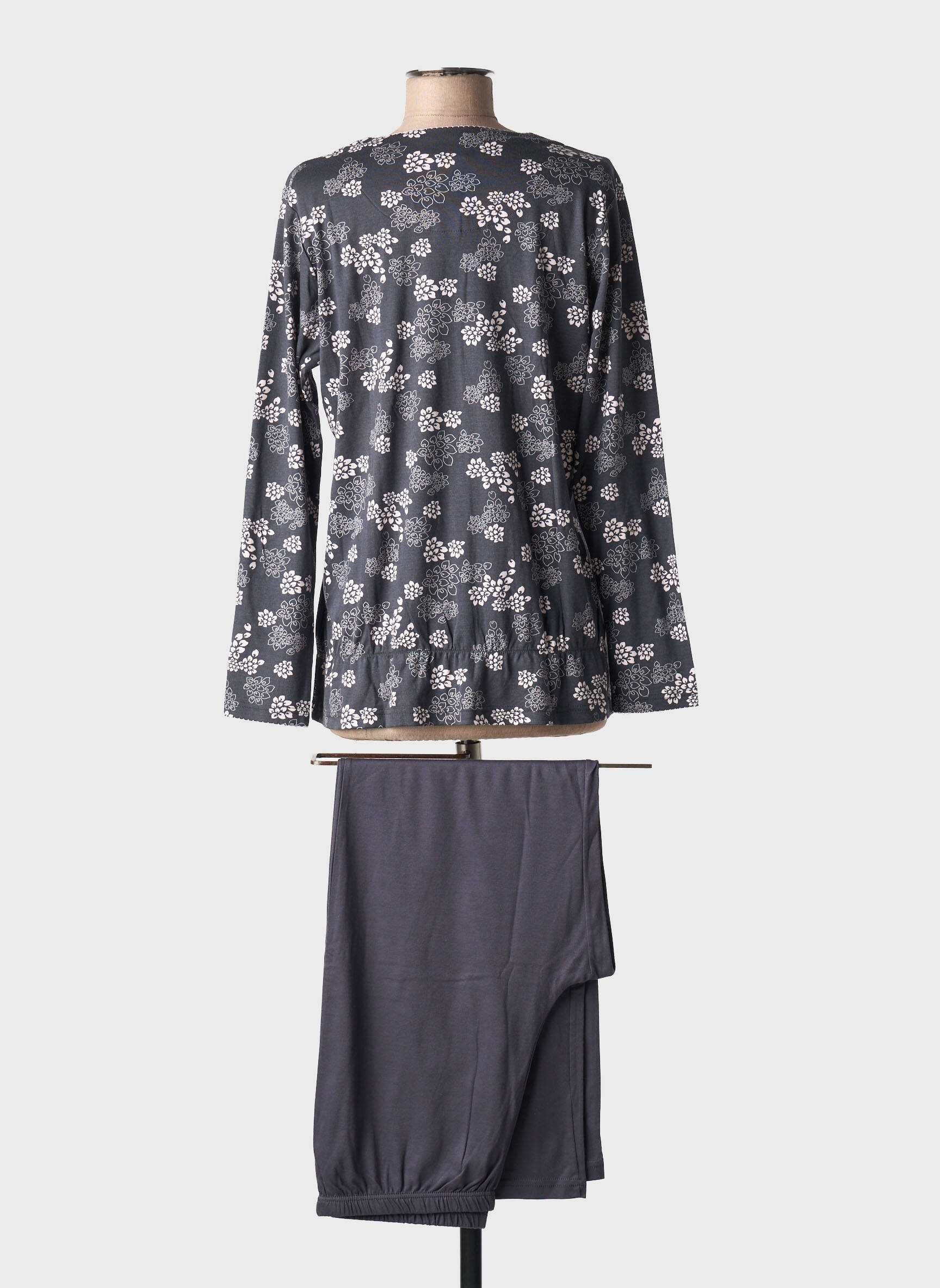 Profitez de ce pyjama CANAT pour femme à prix tout doux, parfait pour se faire plaisir sans se ruiner. Sa veste à manches longues, habillée d’un délicat imprimé fleuri dans des tons gris, se combine à un pantalon uni pour un ensemble plein de douceur et de raffinement. Idéal pour vos soirées cocooning, ce pyjama vous assure confort et élégance à petit prix, le bon plan pour des nuits paisibles et stylées.