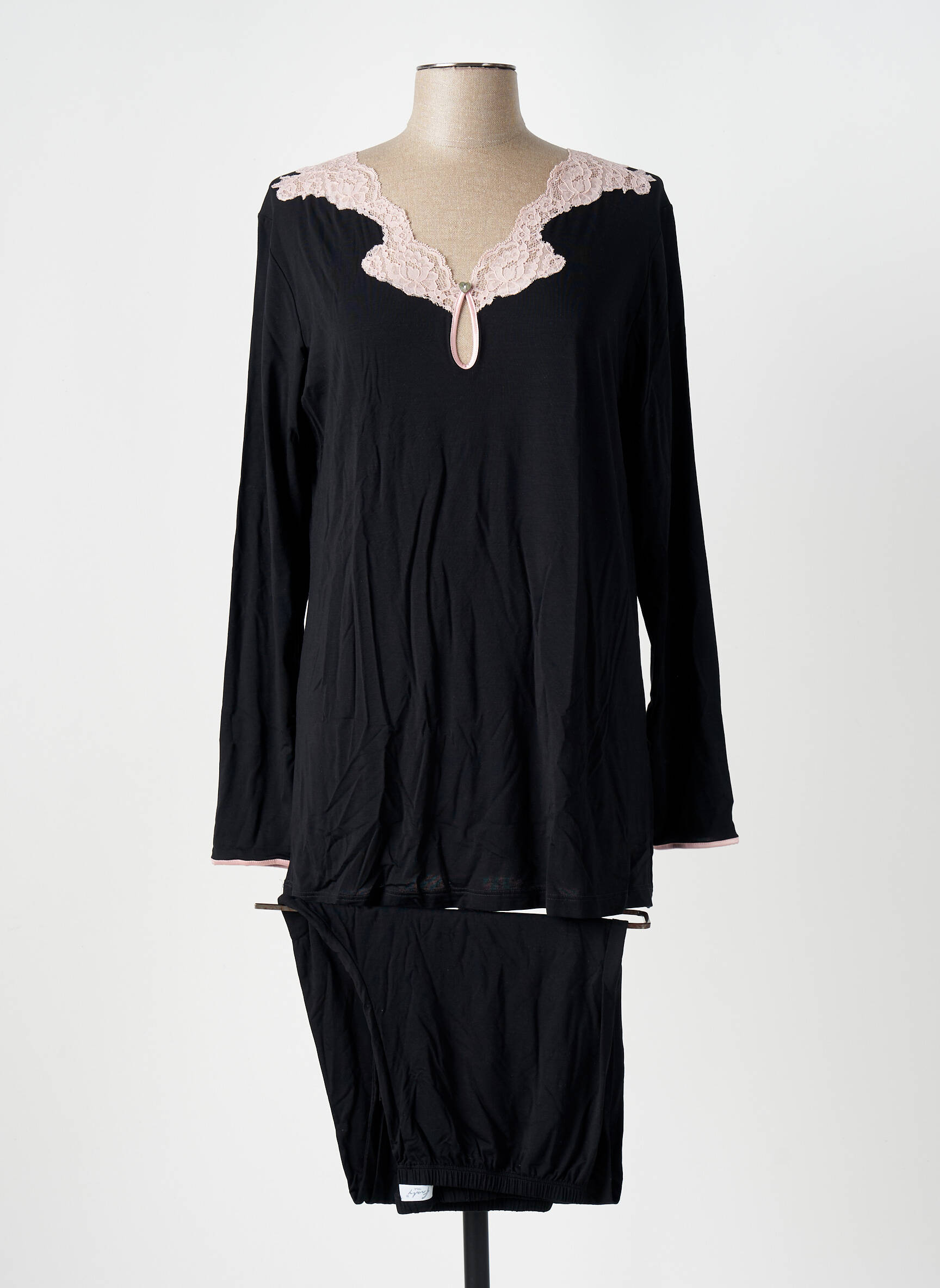 Craquez pour ce pyjama pour femme FRALY, proposé à prix tout doux, idéal pour profiter d’un confort raffiné sans se ruiner. Sa coupe élégante associe le noir profond à une délicate dentelle rose au col, apportant une touche féminine et tendance à vos soirées cocooning. Ce modèle long à manches longues conjugue douceur et style pour des nuits tout en bien-être, une occasion à ne pas manquer pour allier économie et élégance.