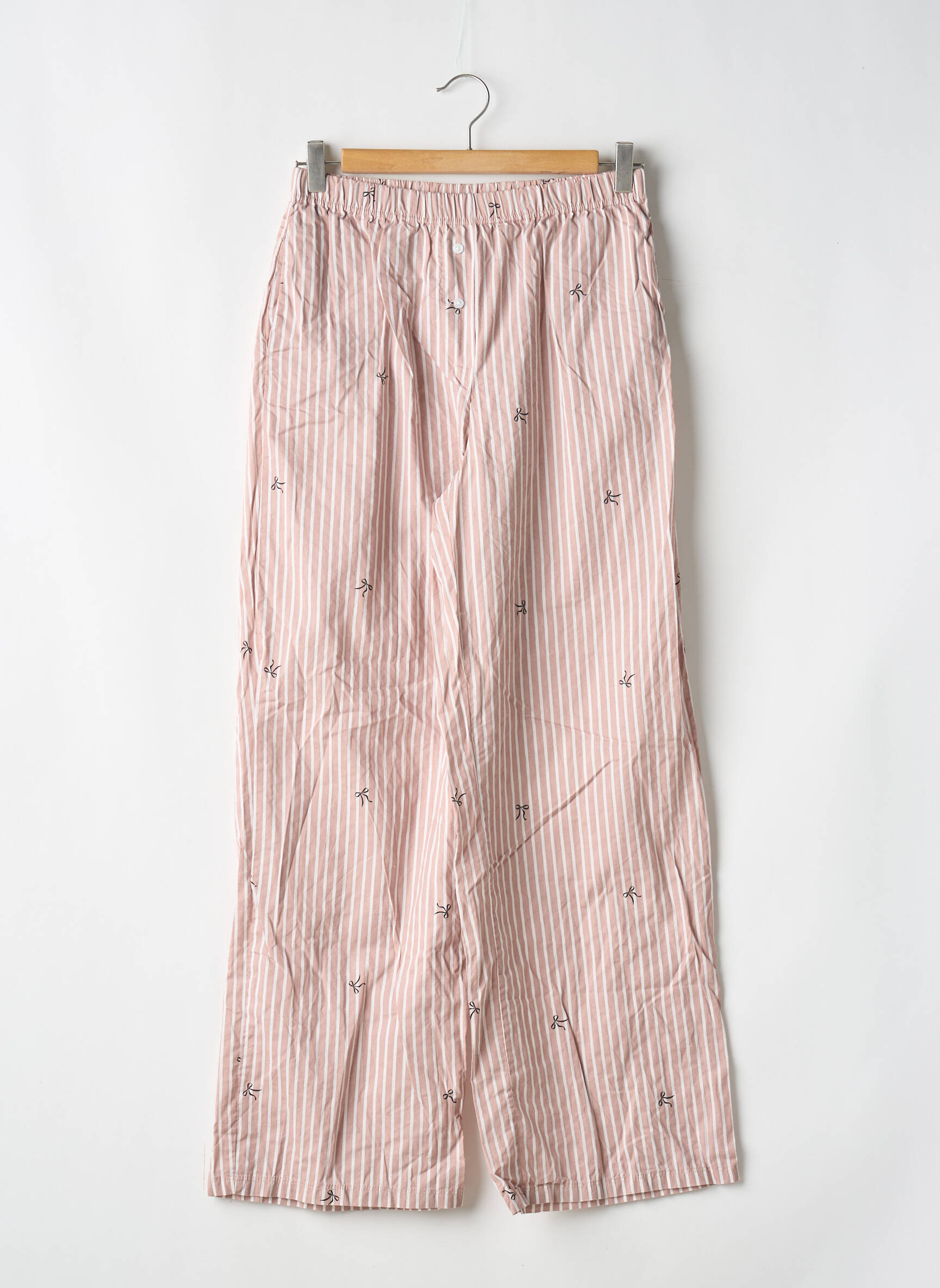 Craquez pour un bon plan détente avec ce pantalon de pyjama H&M pour femme, proposé à prix doux pour profiter du confort sans se ruiner. Ce modèle séduit par son tissu léger à rayures roses subtilement décoré de petits motifs discrets, tandis que la coupe ample et la taille élastiquée garantissent une aisance parfaite pour vos moments de cocooning à la maison. Ne manquez pas cette opportunité de renouveler votre garde-robe de nuit avec style et sans compromis sur votre budget.