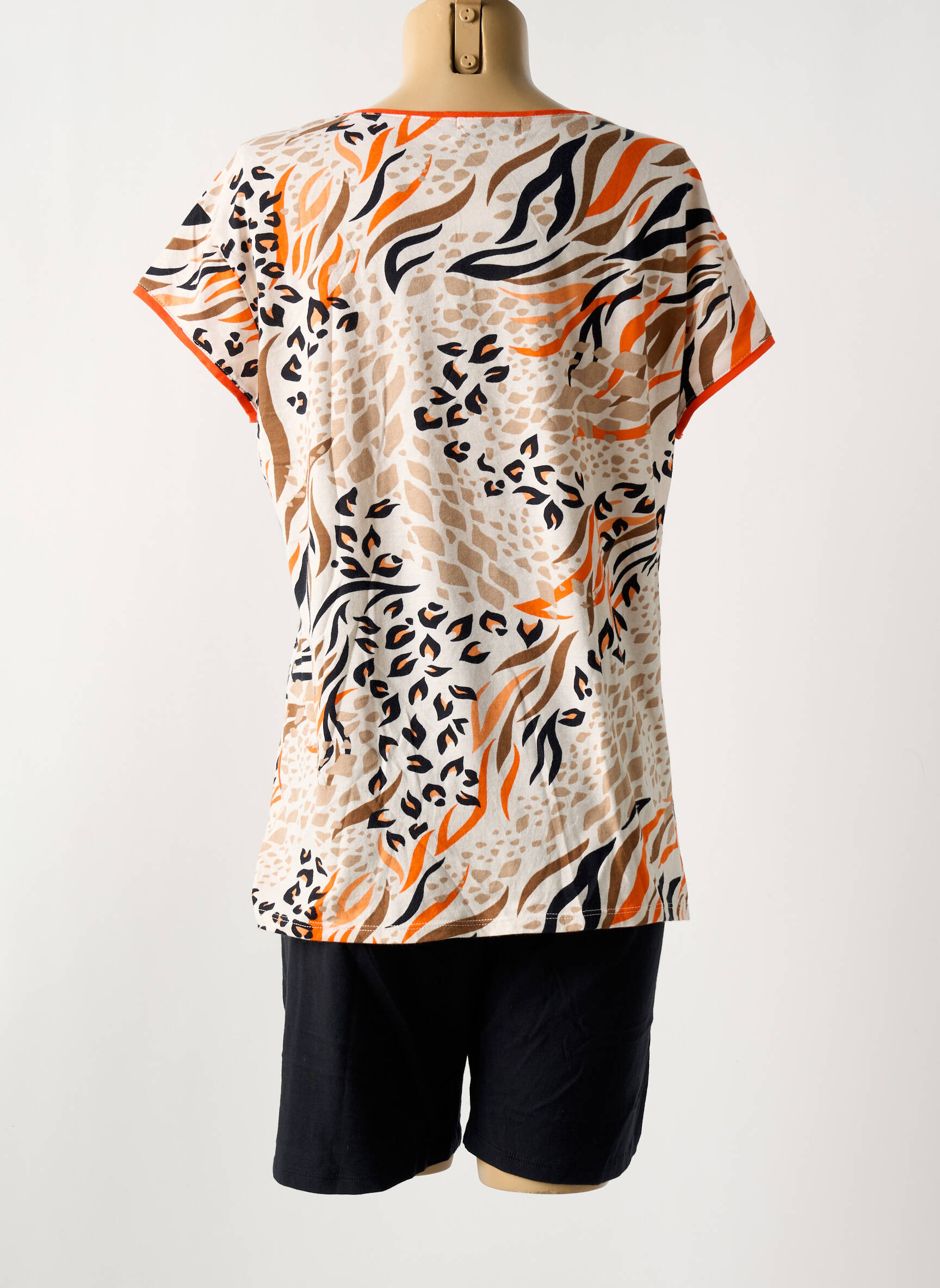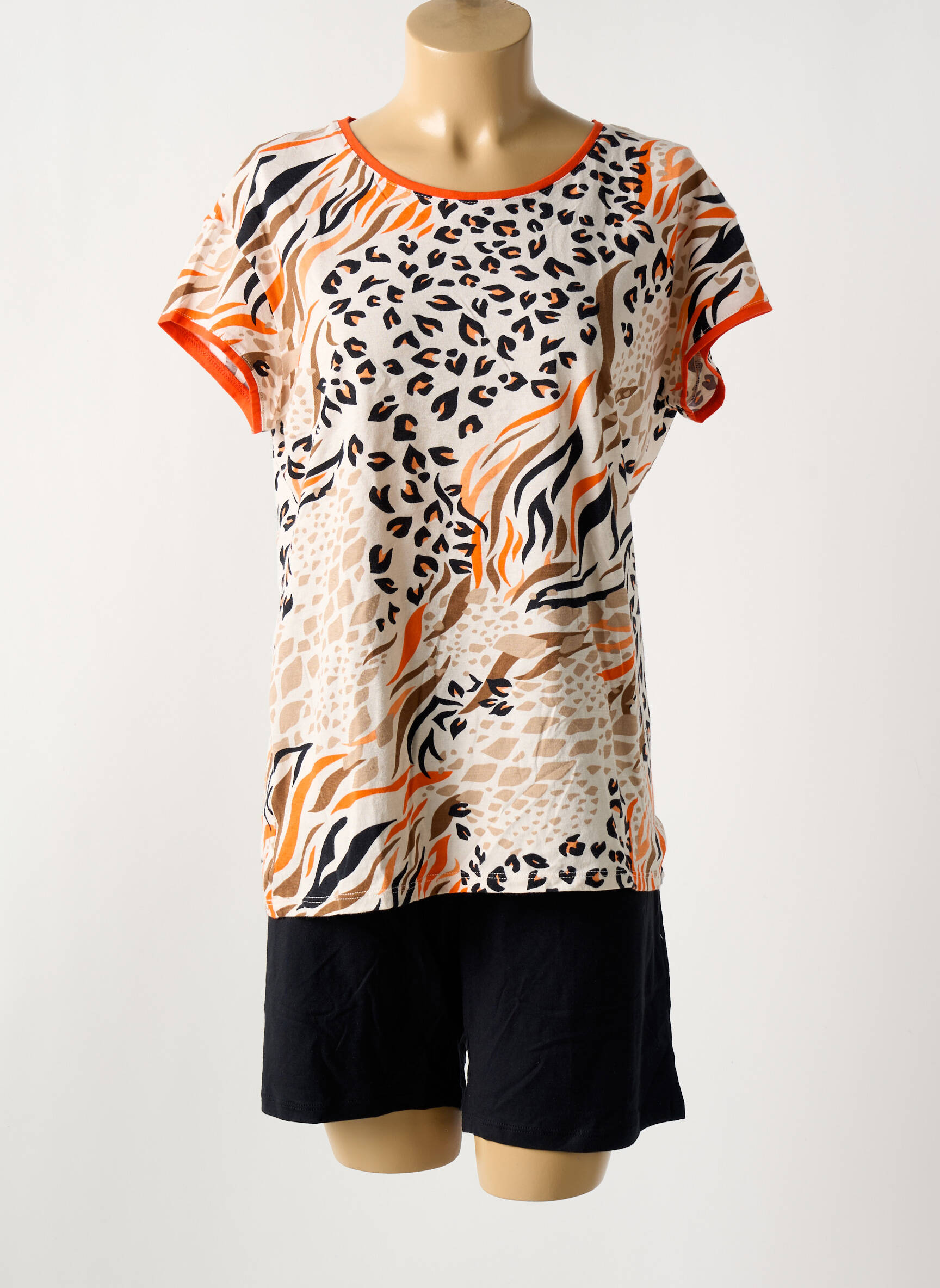 Craquez pour ce pyjama femme de la marque MASSANA proposé à prix tout doux, parfait pour celles qui veulent allier confort et style sans se ruiner. Sa coupe décontractée associe un t-shirt à manches courtes imprimé d’un motif animalier tendance, rehaussé de touches orange pour une note dynamique, et un short uni noir qui complète élégamment l’ensemble. Voici une belle occasion de vous offrir un pyjama moderne et original à petit prix, idéal pour des nuits paisibles ou pour se détendre à la maison.