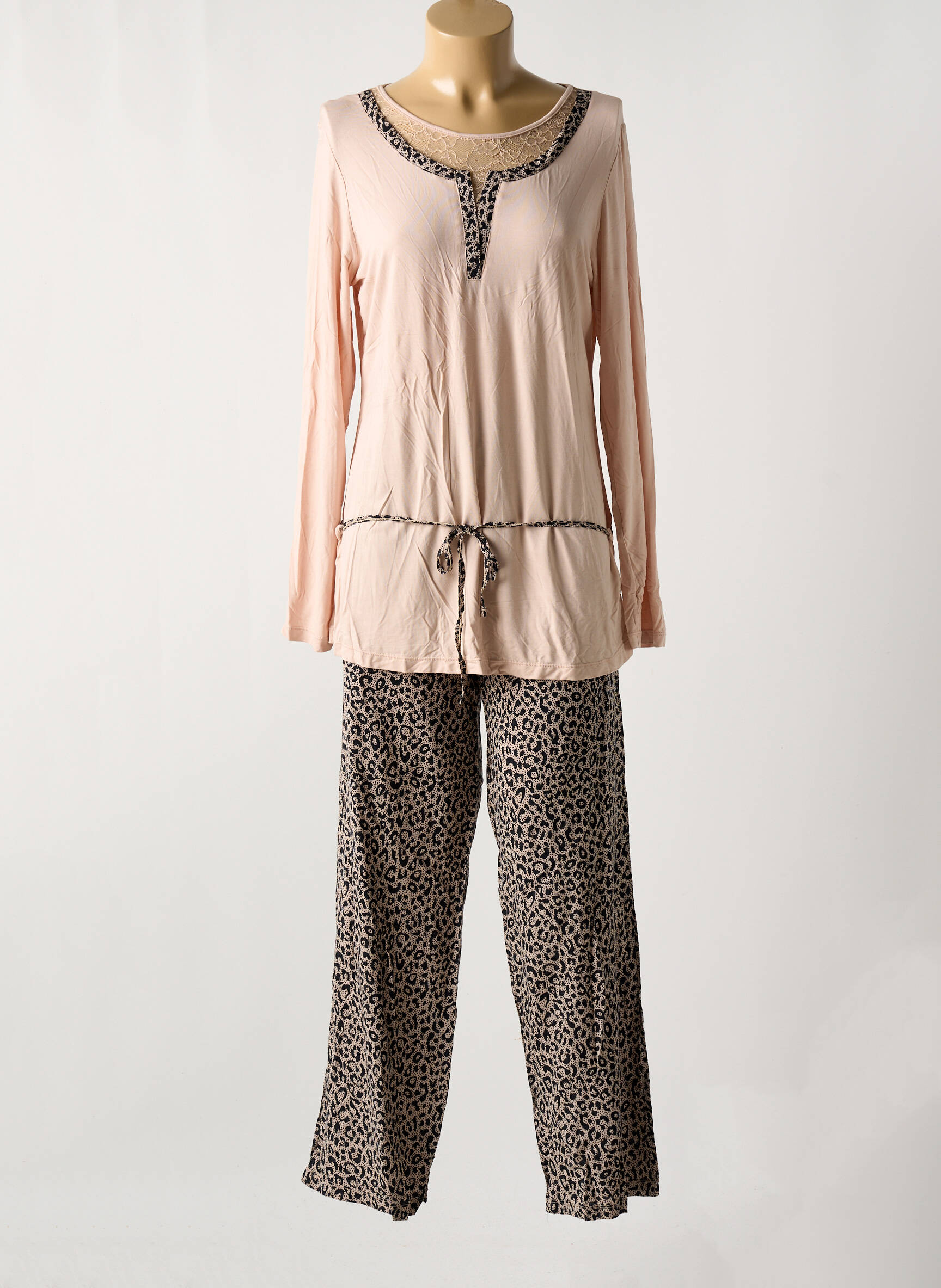 Entrez dans un monde de douceur et d'élégance nocturne avec ce pyjama signé POMM'POIRE. Ce modèle se compose d'un haut délicat en teinte rose pâle qui offre une allure féminine, orné d'un subtil détail en dentelle qui souligne le décolleté. La coupe confortable et ample permet une grande liberté de mouvement, parfait pour les soirées cocooning. Associé à un pantalon à la coupe fluide, habillé d'un motif animalier tendance, ce pyjama allie chic et confort pour un look décontracté et stylé pendant vos nuits. Chaque élément a été soigneusement conçu pour vous envelopper de bien-être tout en restant à la mode.