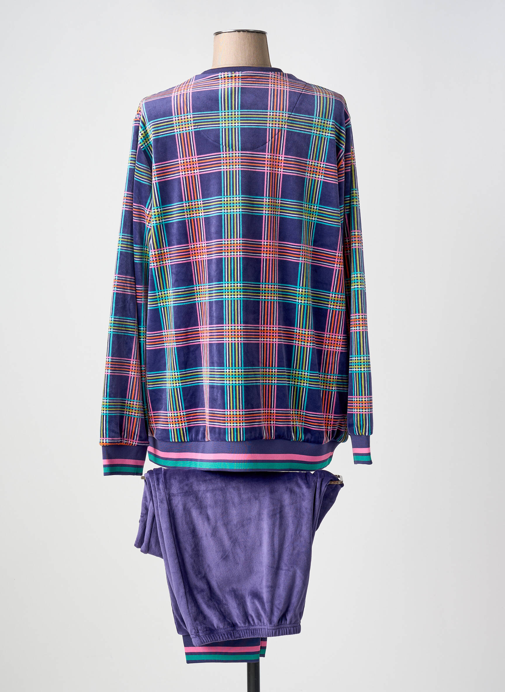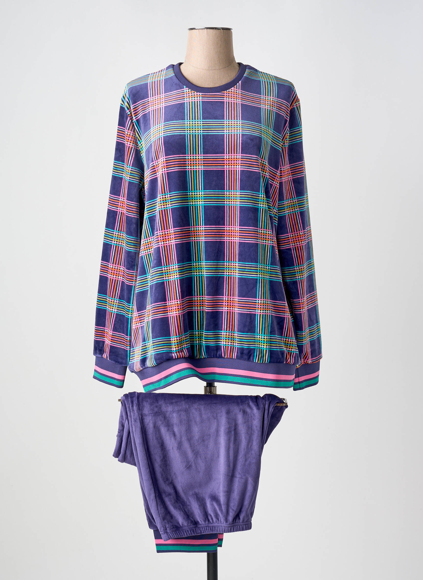 Craquez pour ce pyjama femme SENORETTA qui allie confort, douceur et style à petit prix. Son haut à motif carreaux multicolores apporte une touche de dynamisme et de modernité, tandis que le pantalon uni, d'une texture veloutée, vous enveloppe dans une sensation de bien-être idéale pour les soirées cocooning. Les finitions rayées aux poignets et à la taille ajoutent une note originale pour un ensemble tendance à prix tout doux, parfait pour se faire plaisir sans se ruiner.