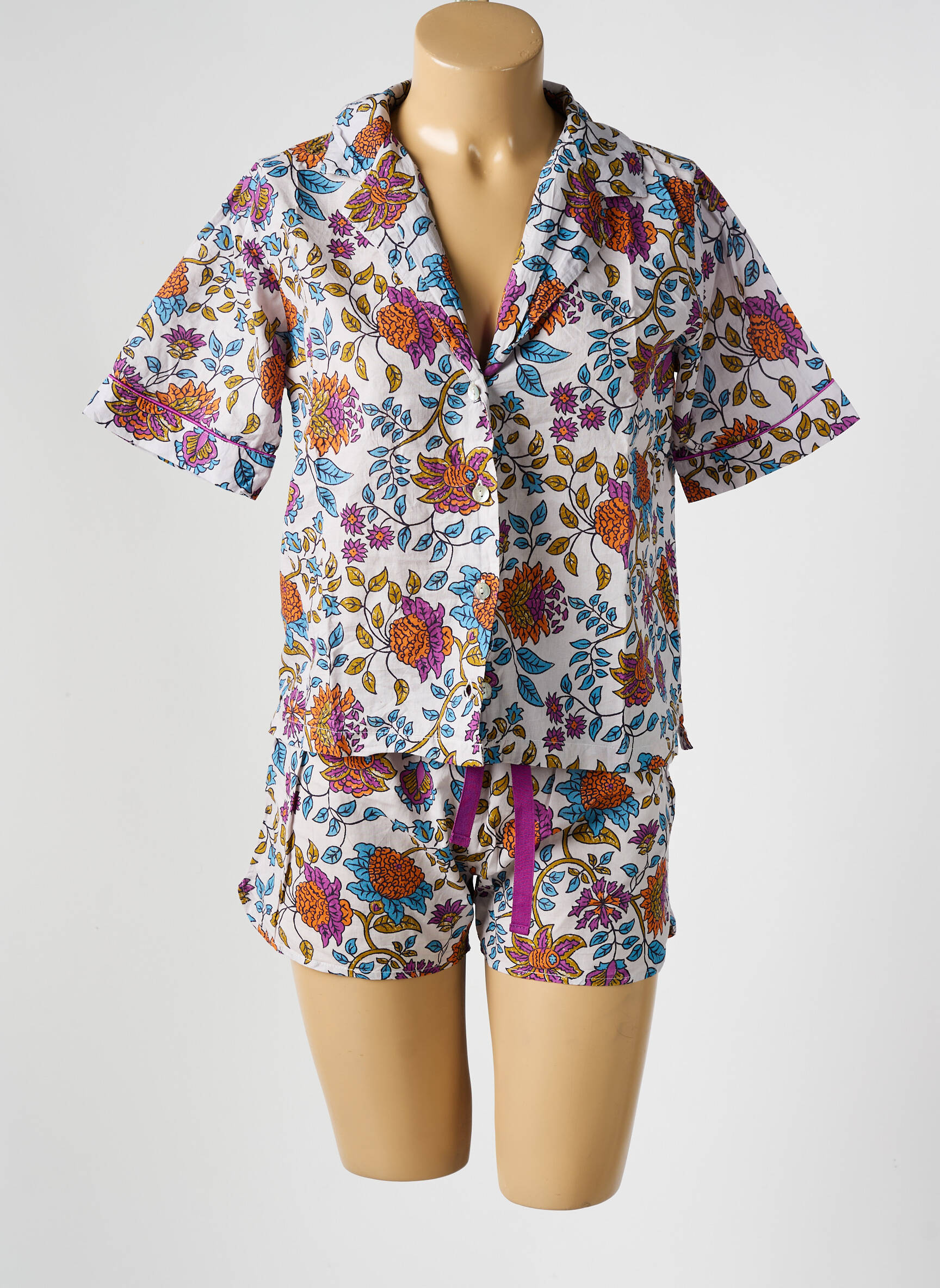 Profitez d’un vrai bon plan avec ce pyjashorts ARTHUR pour femme, qui allie confort et élégance à petit prix grâce à son ensemble chemisier et short à l’imprimé fleuri coloré, parfait pour des nuits estivales fraîches et stylées.