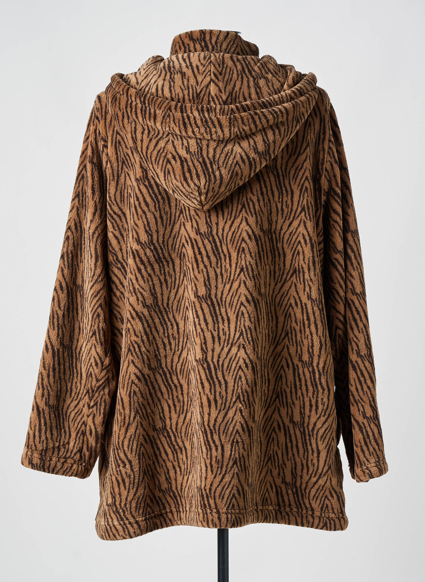 Abandonnez votre quotidien et plongez dans un univers de confort avec la robe de chambre SENORETTA pour femme, un mélange audacieux de style et de chaleur. Ce modèle arbore un motif intemporel évoquant la fourrure de tigre, ajoutant une touche sauvage et élégante à votre collection de vêtements d'intérieur. Dotée d'une capuche pratique, elle est parfaite pour les journées cocooning, vous enveloppant d'une douceur agréable. La coupe ample assure une liberté de mouvement tout en créant une silhouette décontractée, idéale pour se détendre chez soi avec style. Laissez-vous séduire par ce vêtement qui transforme la routine en moment de luxe.