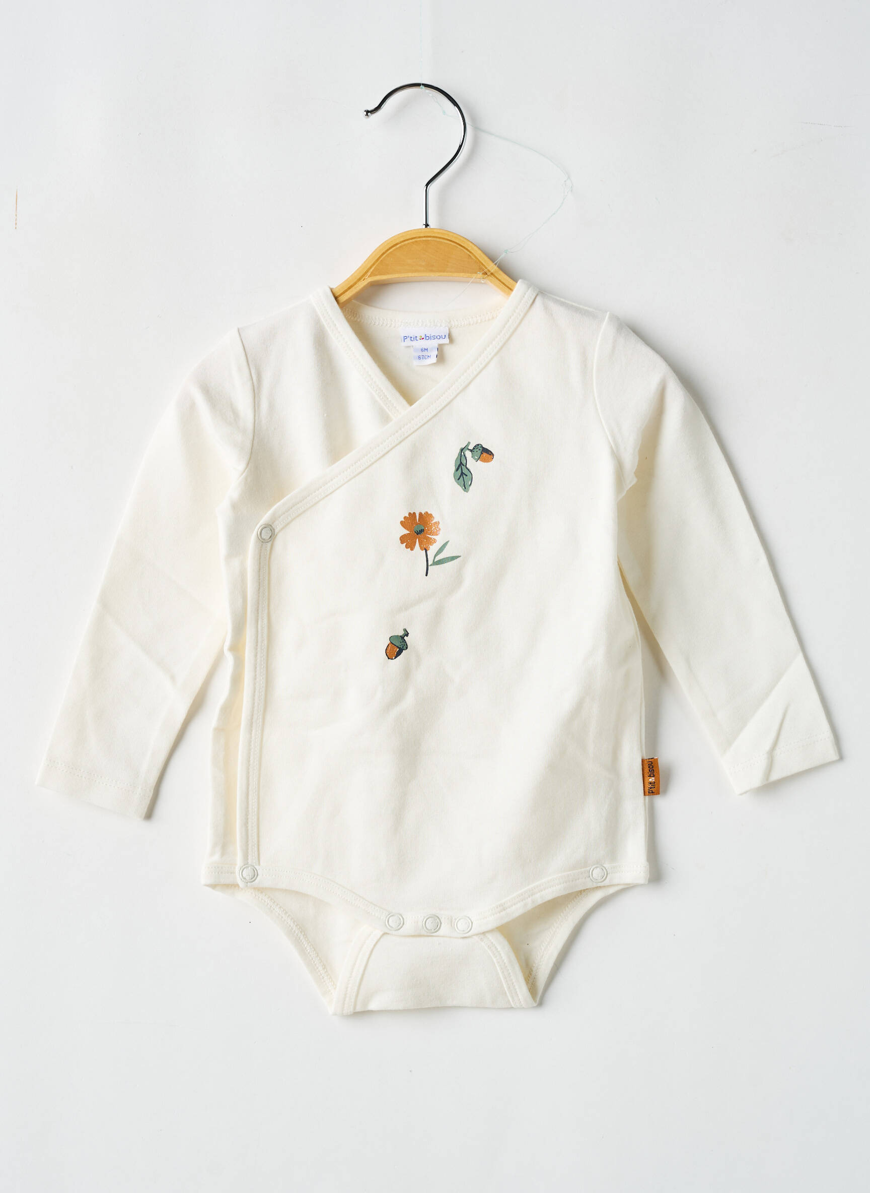 Profitez d’un petit prix pour offrir à votre bébé ce body P’TIT BISOU pour fille, à la douceur incomparable et au style délicat, orné de broderies fleuries colorées sur fond crème. La coupe croisée facilite l’habillage au quotidien, idéal pour allier confort, praticité et économies sur une marque reconnue pour sa qualité.