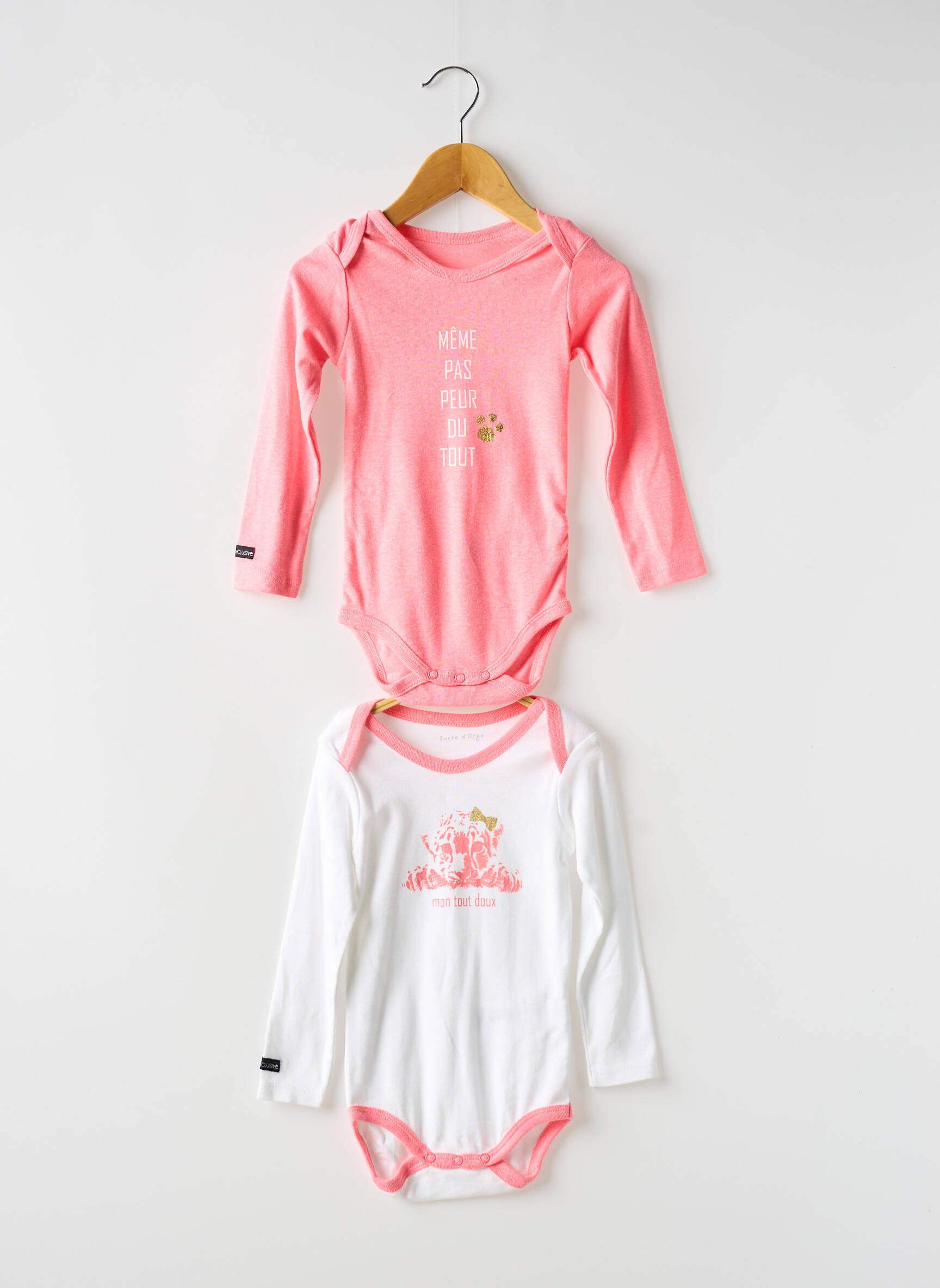 Profitez d’un véritable bon plan avec ce lot de bodies SUCRE D'ORGE pour fille, parfaits pour allier douceur, confort et économies au quotidien. L’un dans un joli rose lumineux avec une inscription discrète, et l’autre en blanc éclatant rehaussé de détails roses et d’un motif floral délicat, ces bodies à manches longues sont idéals pour habiller votre petite fille avec style à petit prix. Que ce soit pour le quotidien ou pour les premiers mois, ce duo est une solution pratique et économique pour renouveler la garde-robe tout en profitant des incontournables d’une marque reconnue.