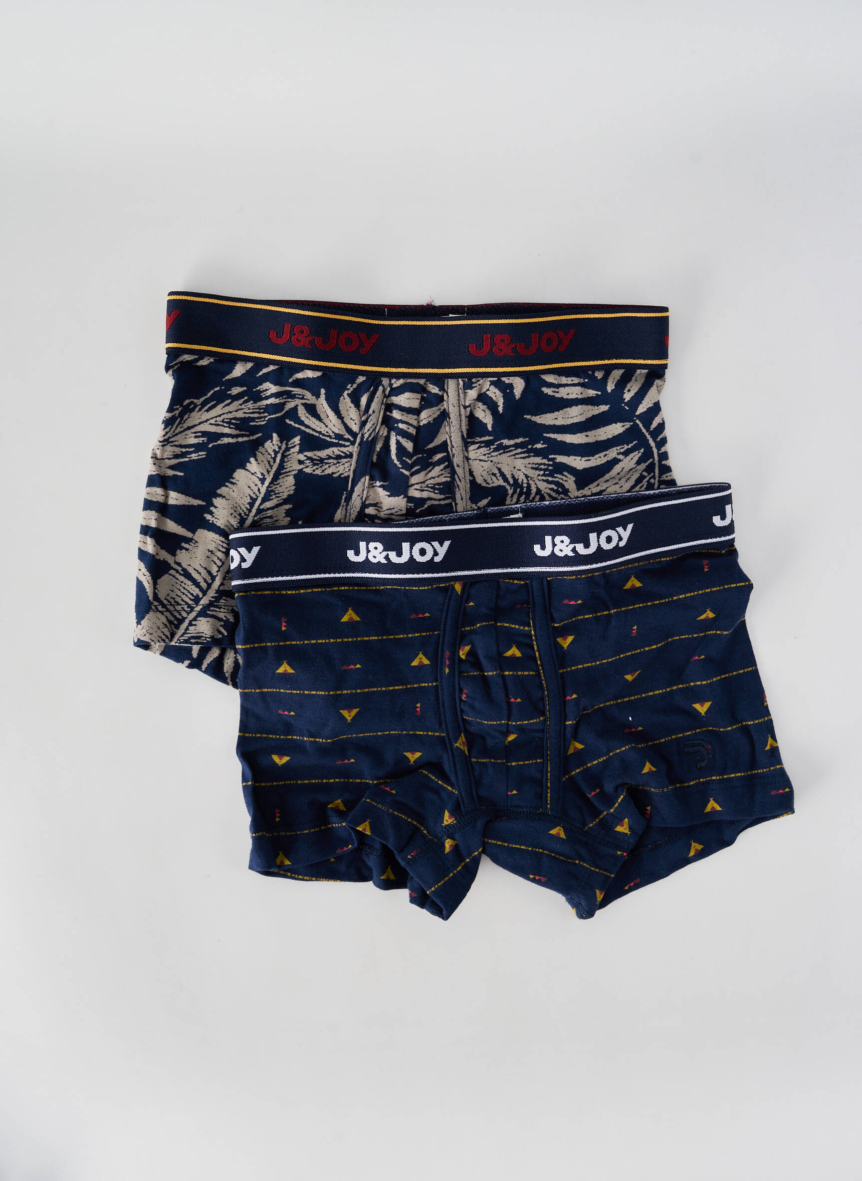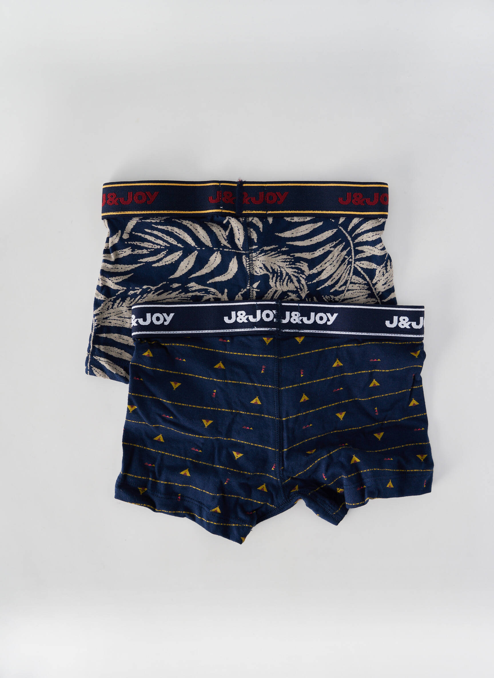 Profitez d’une véritable opportunité avec ce lot de deux boxers garçon J&JOY, qui allient style tendance et petit prix. Le premier affiche un imprimé végétal moderne sur fond bleu nuit avec une ceinture siglée contrastée, tandis que le second séduit avec son motif graphique discret et ses touches de jaune sur une base bleu foncé, parfait pour apporter une touche de fun au quotidien. Un choix malin pour renouveler le tiroir à sous-vêtements sans se ruiner tout en optant pour la qualité et le confort.