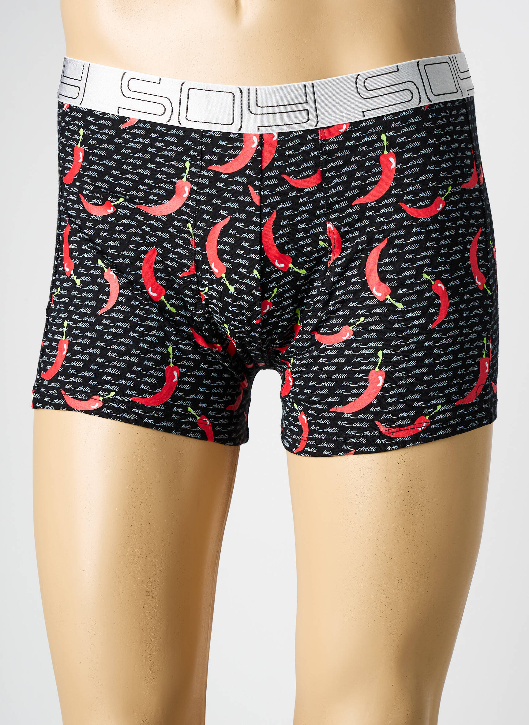 Saisissez l’occasion de faire des économies avec ce boxer SOY pour homme, idéal pour ajouter une touche fun et originale à votre tiroir à sous-vêtements grâce à son imprimé pimenté sur fond noir. Sa ceinture élastiquée à logo garantit un maintien confortable au quotidien, parfait pour allier style et petits prix sans compromis sur la qualité.