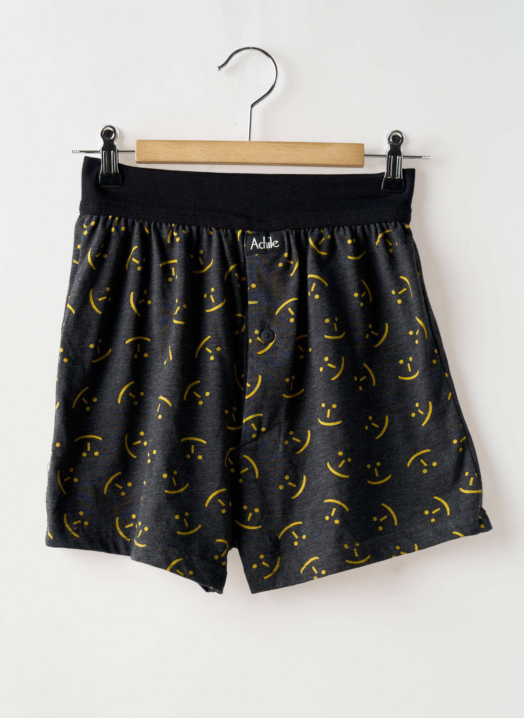Craquez pour ce caleçon homme de la marque Achile proposé à prix tout doux, idéal pour allier confort et style sans se ruiner. Son motif original de smileys jaunes sur fond gris foncé apporte une touche de fantaisie et de modernité à votre quotidien, tandis que sa large ceinture élastique assure un maintien agréable tout au long de la journée. C’est le bon plan parfait pour renouveler son tiroir à sous-vêtements avec une pièce tendance et abordable.