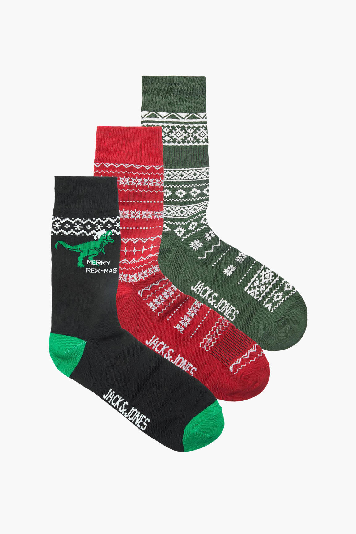 Offrez-vous un lot de chaussettes JACK & JONES pour homme à prix mini, parfait pour profiter d’un style tendance sans se ruiner. Ce lot de trois paires propose des motifs originaux aux couleurs festives, alliant un mélange de rouge, vert et noir avec des détails graphiques et une touche de fantaisie sur la cheville. Idéales pour apporter une note originale à vos tenues du quotidien ou comme idée cadeau économique et stylée, ces chaussettes garantissent confort et durabilité à petit prix.