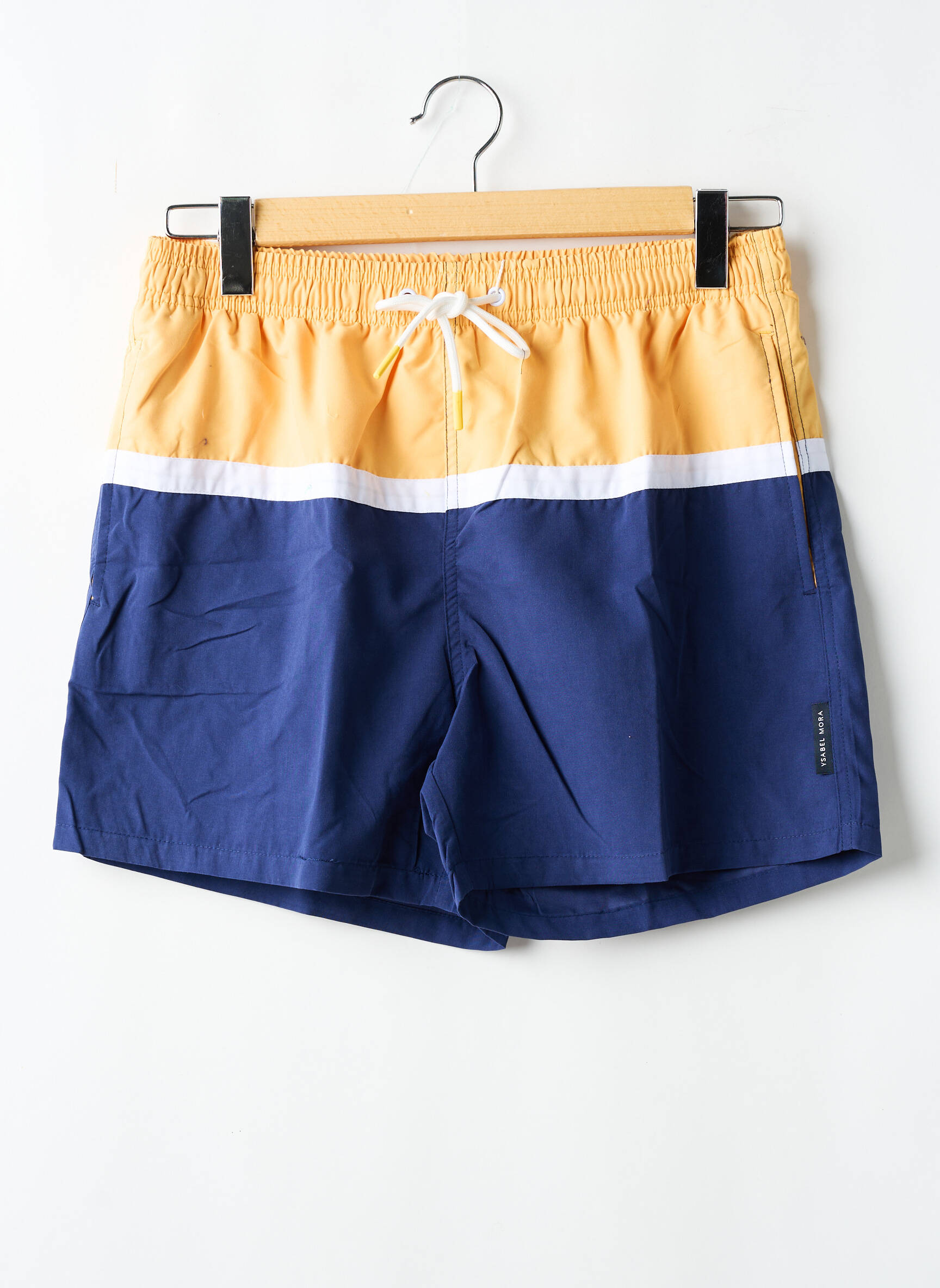 Profitez d'une offre exceptionnelle sur ce short de bain Ysabel Mora pour homme, parfait pour ceux qui recherchent à la fois style et économies. Ce modèle affiche un design bicolore tendance avec un haut jaune sablé et un bas bleu marine, rehaussé par une bande blanche contrastante. La taille élastiquée avec cordon de serrage assure un ajustement confortable et personnalisé, idéal pour vos journées à la plage ou à la piscine sans vous ruiner. N’attendez plus pour ajouter une pointe de modernité à votre été à prix mini.