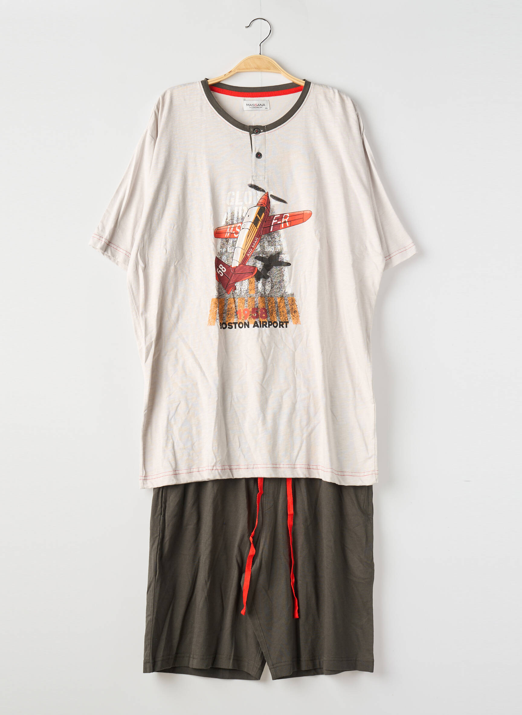 Profitez d’un super bon plan avec ce pyjama pour homme de la marque MASSANA, idéal pour ceux qui recherchent confort et style à prix mini. Le haut présente une jolie patte de boutonnage et un imprimé original façon vintage inspiré de l’aviation, tandis que le col rond rehaussé d’une touche de couleur apporte une note de modernité. Accompagné d’un short ample et uni, ce pyjama allie praticité et élégance pour des nuits tout en douceur, sans vous ruiner.