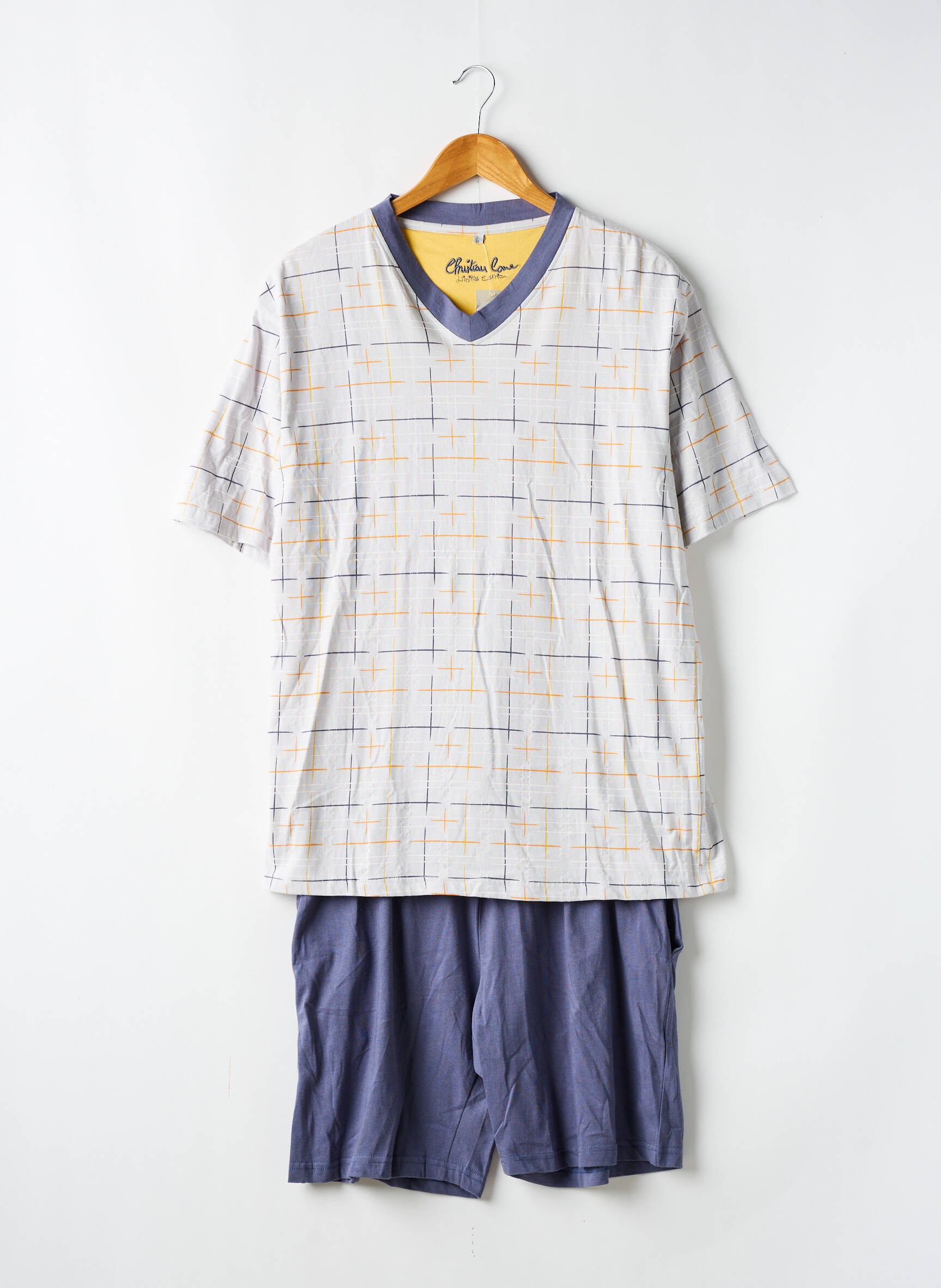 Profitez d’un bon plan sommeil avec ce pyjashorts Christian Cane, pensé pour offrir un confort optimal sans vous ruiner. Le haut à manches courtes présente un imprimé graphique à carreaux discrets dans des tons doux, relevé d’un col en V bleu qui apporte une touche moderne, tandis que le short uni bleu s’associe à merveille pour une allure décontractée. Ce pyjama vous garantit des nuits agréables à petit prix, parfait pour se détendre avec style tout en maîtrisant son budget.