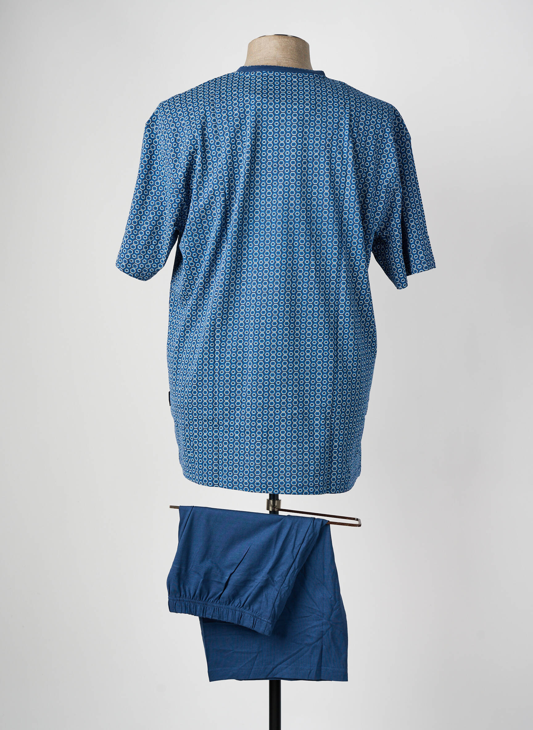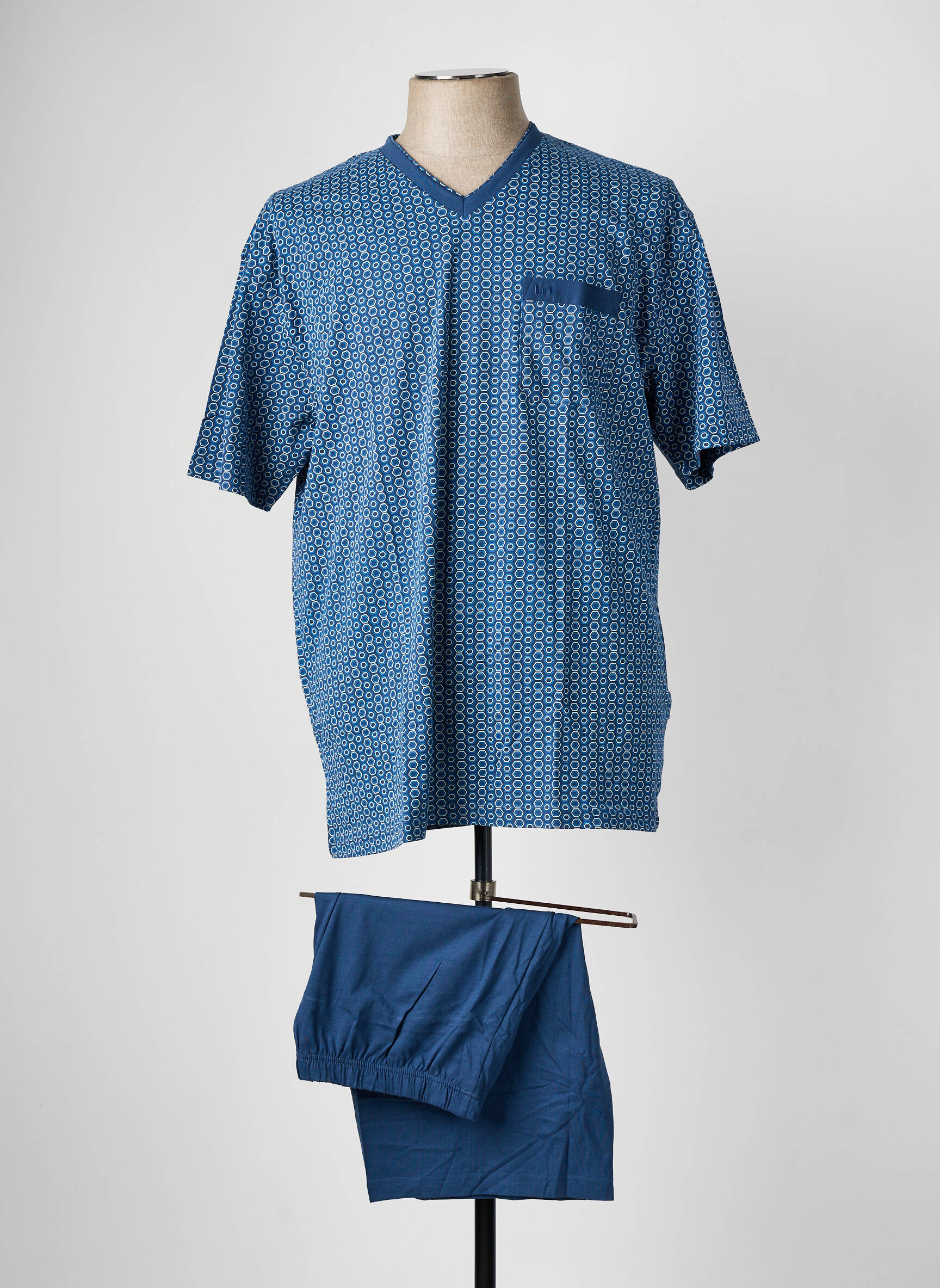 Profitez d’un bon plan pour allier confort et style à petit prix avec ce pyjashorts pour homme signé GÖTZBURG, qui séduit par son haut bleu à motifs géométriques discrets contrasté par une poche poitrine unie et son short assorti dans un bleu profond, pour des nuits douces et détendues sans vous ruiner.