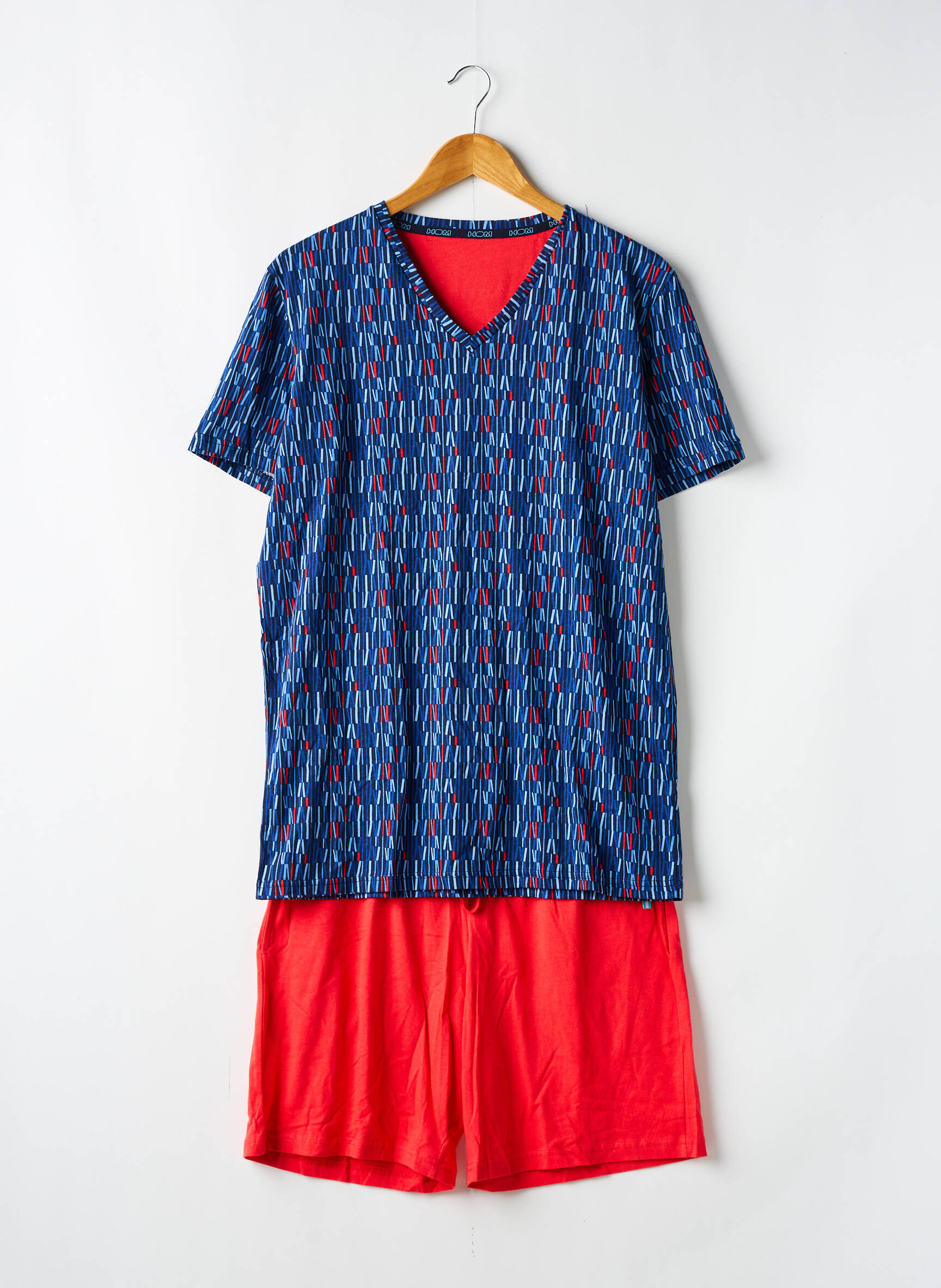 Ce pyjashorts HOM pour homme est le choix malin pour allier confort et style sans se ruiner, avec son haut à motif graphique bleu relevé de touches colorées et son short rouge éclatant, c’est l’ensemble parfait pour des nuits douces à petit prix et une allure moderne même à la maison.