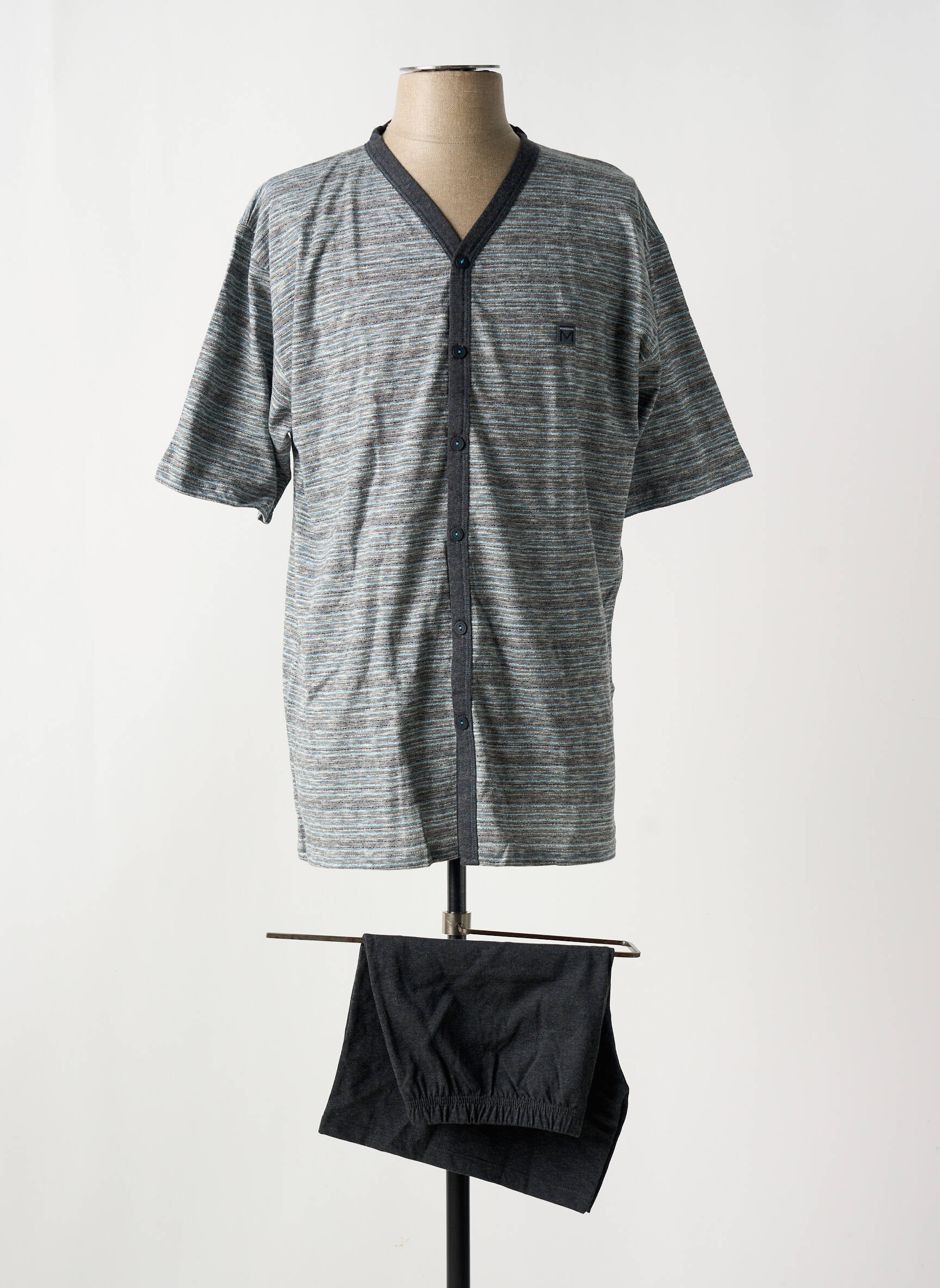 Profitez d’un pyjashorts MASSANA pour homme à prix mini sans faire de compromis sur le confort pour vos nuits d’été. Ce modèle se distingue par son haut à manches courtes doté d’une coupe ample, sa boutonnière pratique sur le devant et son motif rayé discret rehaussé par un liseré contrastant, tandis que le short uni accompagne parfaitement l’ensemble pour un look décontracté et soigné à la maison, le tout proposé à un tarif imbattable pour se faire plaisir sans se ruiner.