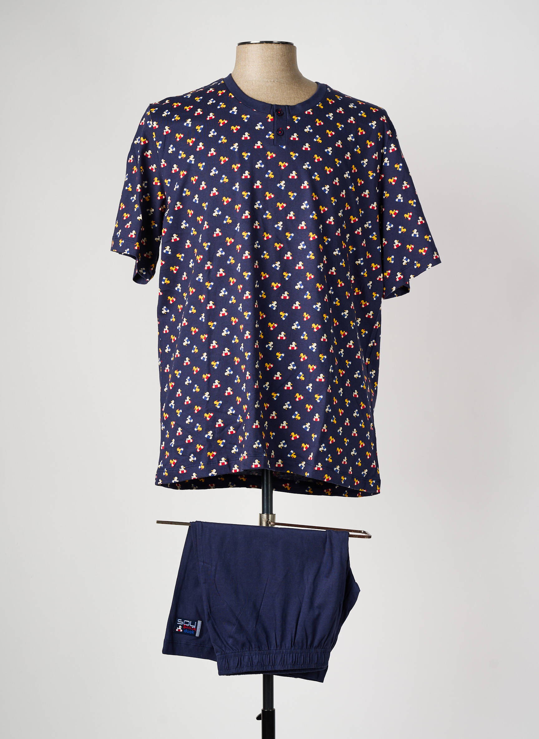 Craquez pour ce pyjashorts pour homme signé SOY, une vraie pépite à petit prix pour des nuits tout en confort sans vous ruiner. Composé d’un t-shirt à manches courtes entièrement imprimé de motifs graphiques colorés et d’un short uni assorti, il allie style moderne et esprit détente, parfait pour dormir ou chiller à la maison tout en faisant des économies.