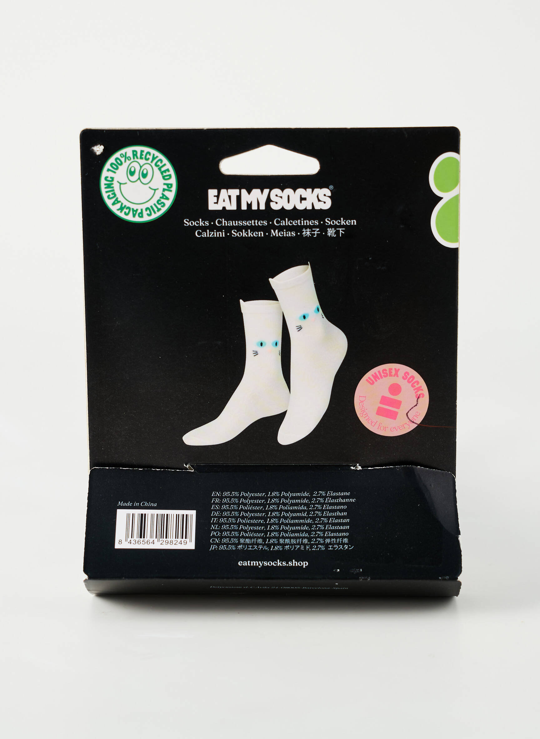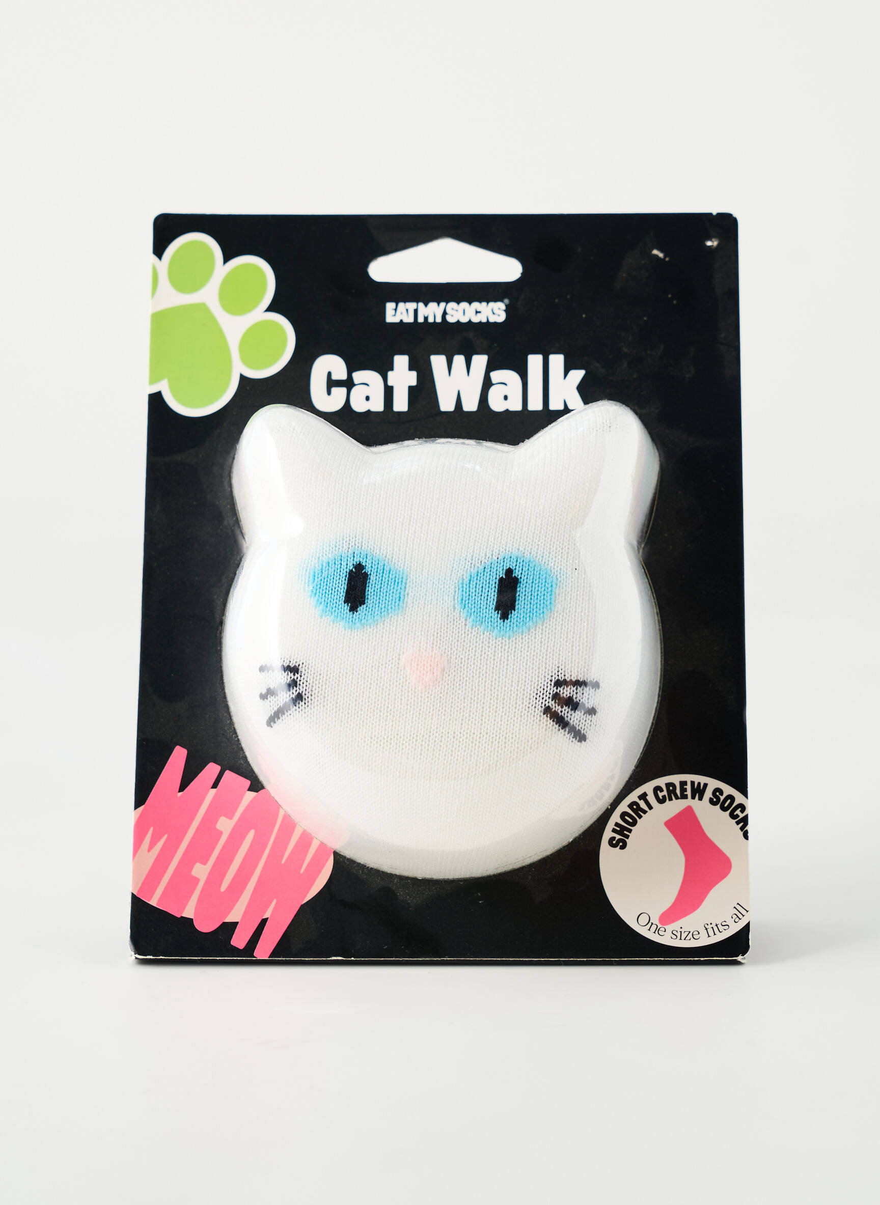 Craquez pour ces chaussettes originales de la marque EAT MY SOCKS qui sauront apporter une touche de fun à votre quotidien sans vous ruiner. Présentées dans un packaging ludique en forme de tête de chat, elles séduisent par leur motif félin aux yeux bleus et leur look décalé, tout en restant ultra accessibles question prix, parfait pour se faire plaisir ou offrir un cadeau original sans se priver.