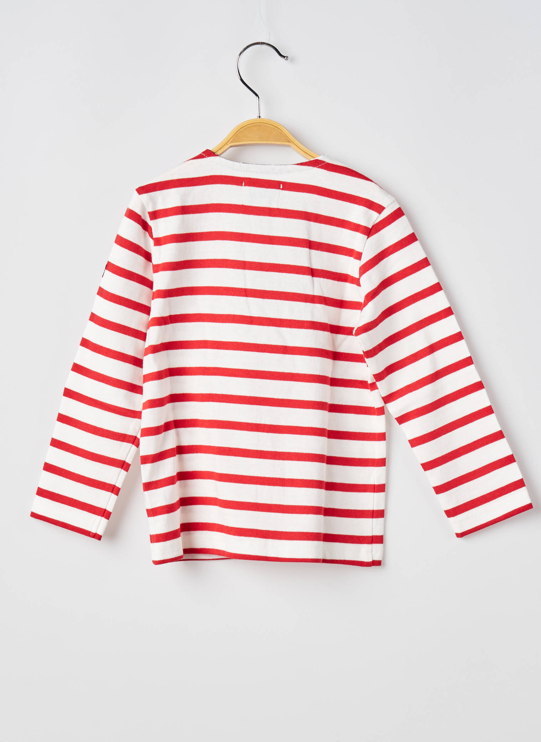 Quand le style rencontre la gaieté des marins en herbe, ce T-shirt à manches longues se dévoile avec ses rayures rouges éclatantes sur un fond blanc immaculé, rehaussé d'une poche poitrine en tissu rose aux motifs délicats et signée d'un discret monogramme "EOM," tandis que ses boutons sur l'épaule apportent une touche pratique et originale pour habiller facilement les enfants avec charme et légèreté.