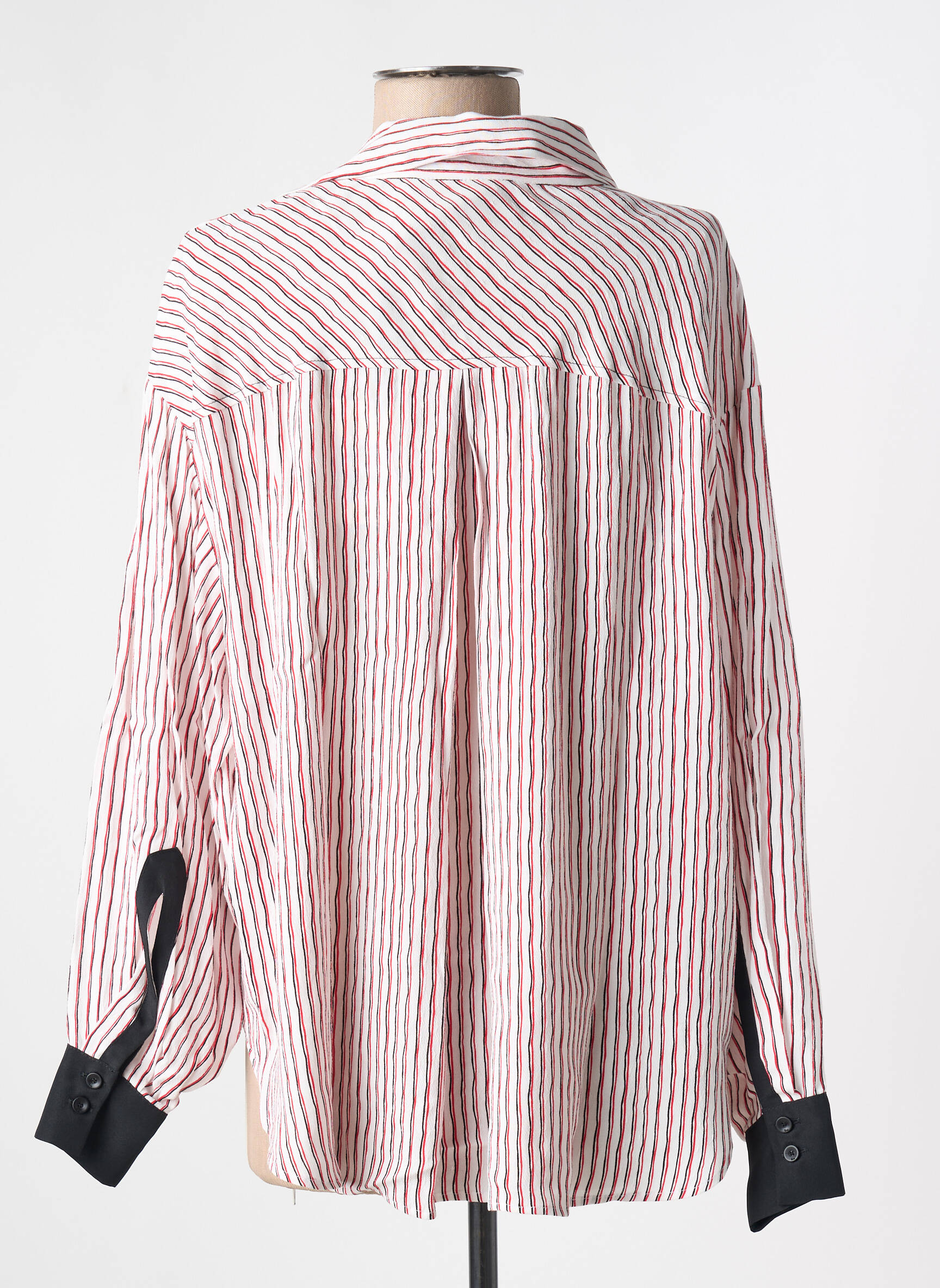 Profitez d’une blouse 8PM pour femme à prix exceptionnel pour apporter une touche de modernité à votre dressing sans vous ruiner. Son motif rayé subtil dans les tons rouge et blanc, rehaussé par des détails noirs au col à nouer et aux poignets, offre une silhouette élégante et décontractée, idéale pour toutes vos envies de looks actuels à petit prix.