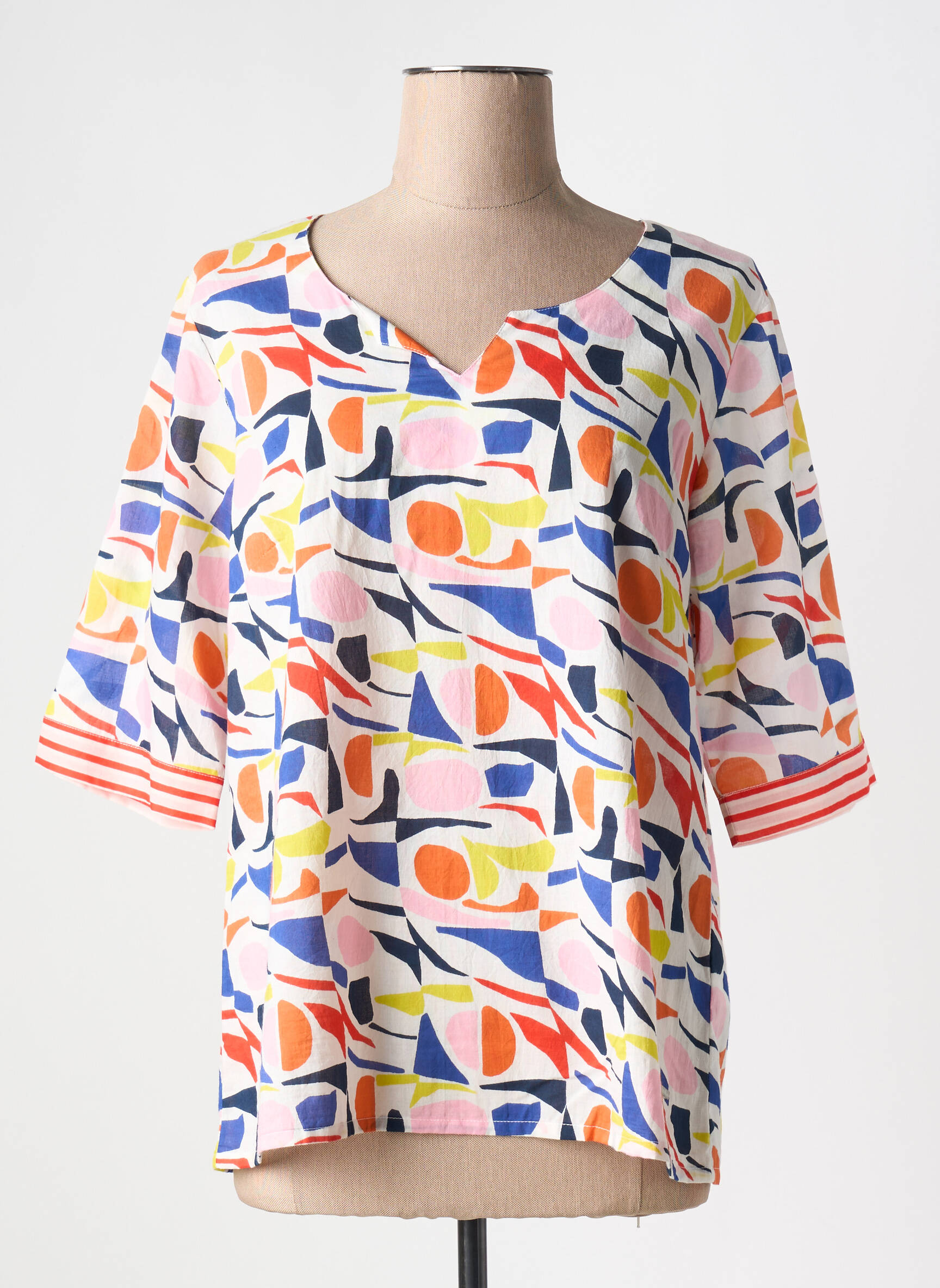 Craquez pour cette blouse femme AGATHE & LOUISE qui allie élégance et originalité à petit prix ! Avec son imprimé géométrique coloré et ses manches ornées d’un détail rayé, elle apporte tout de suite une touche de pep’s à votre garde-robe sans vous ruiner. C’est le bon plan idéal pour celles qui recherchent un haut tendance, de qualité, à prix tout doux.