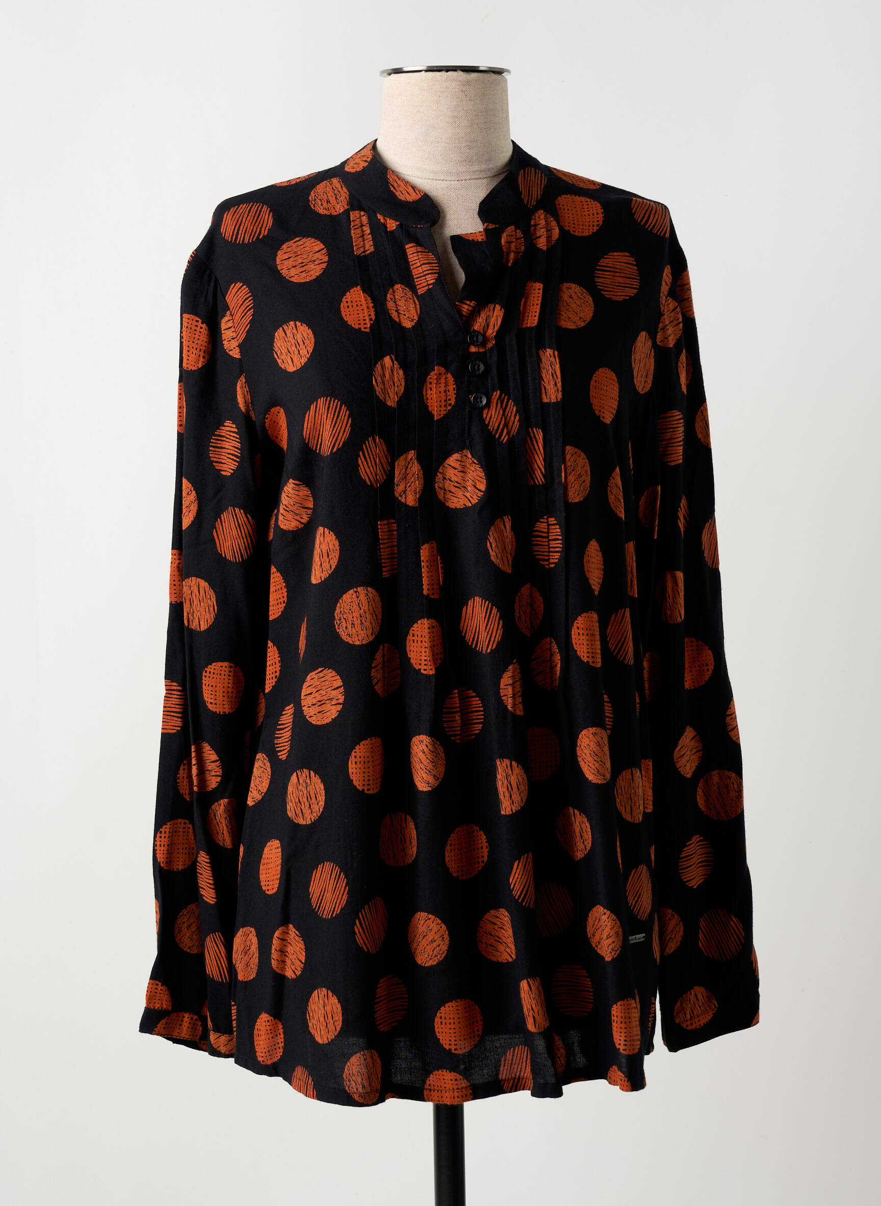 Craquez pour cette blouse de la marque AGATHE & LOUISE à prix irrésistible, parfaite pour donner du pep’s à votre dressing sans vous ruiner. Ses grands pois orange sur fond noir apportent une touche graphique originale, tandis que la coupe fluide et le décolleté boutonné assurent confort et style en toutes circonstances. Adoptez cette pièce tendance et faites-vous plaisir à petit prix grâce à nos offres déstockage.
