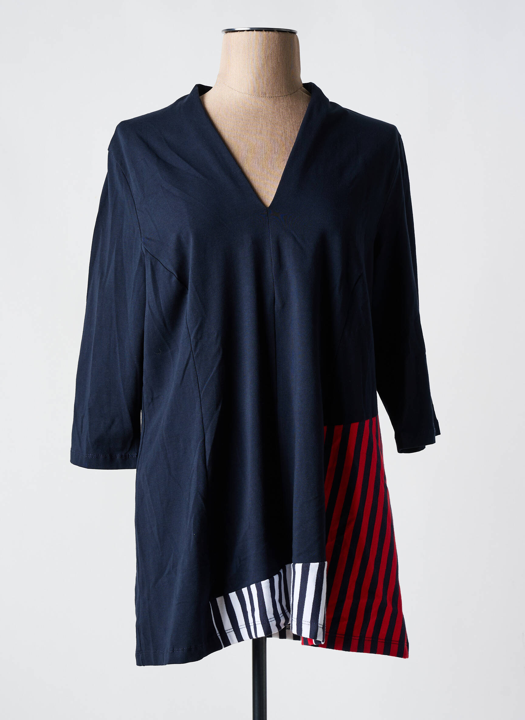 Profitez d’un vrai bon plan avec cette blouse pour femme signée ALEMBIKA, idéale pour apporter une touche d’originalité à petit prix dans votre dressing. Son allure élégante se distingue par une coupe fluide et un col en V délicat, tandis que l’originalité se dévoile dans les pans contrastés de rayures rouges et noires qui apportent une note graphique très chic. C’est le choix parfait pour celles qui veulent renouveler leur garde-robe sans se ruiner, tout en affirmant leur style avec un vêtement unique et raffiné.