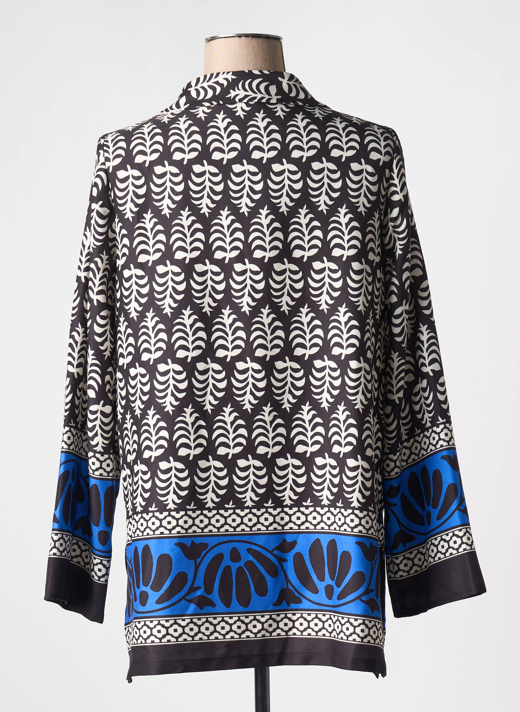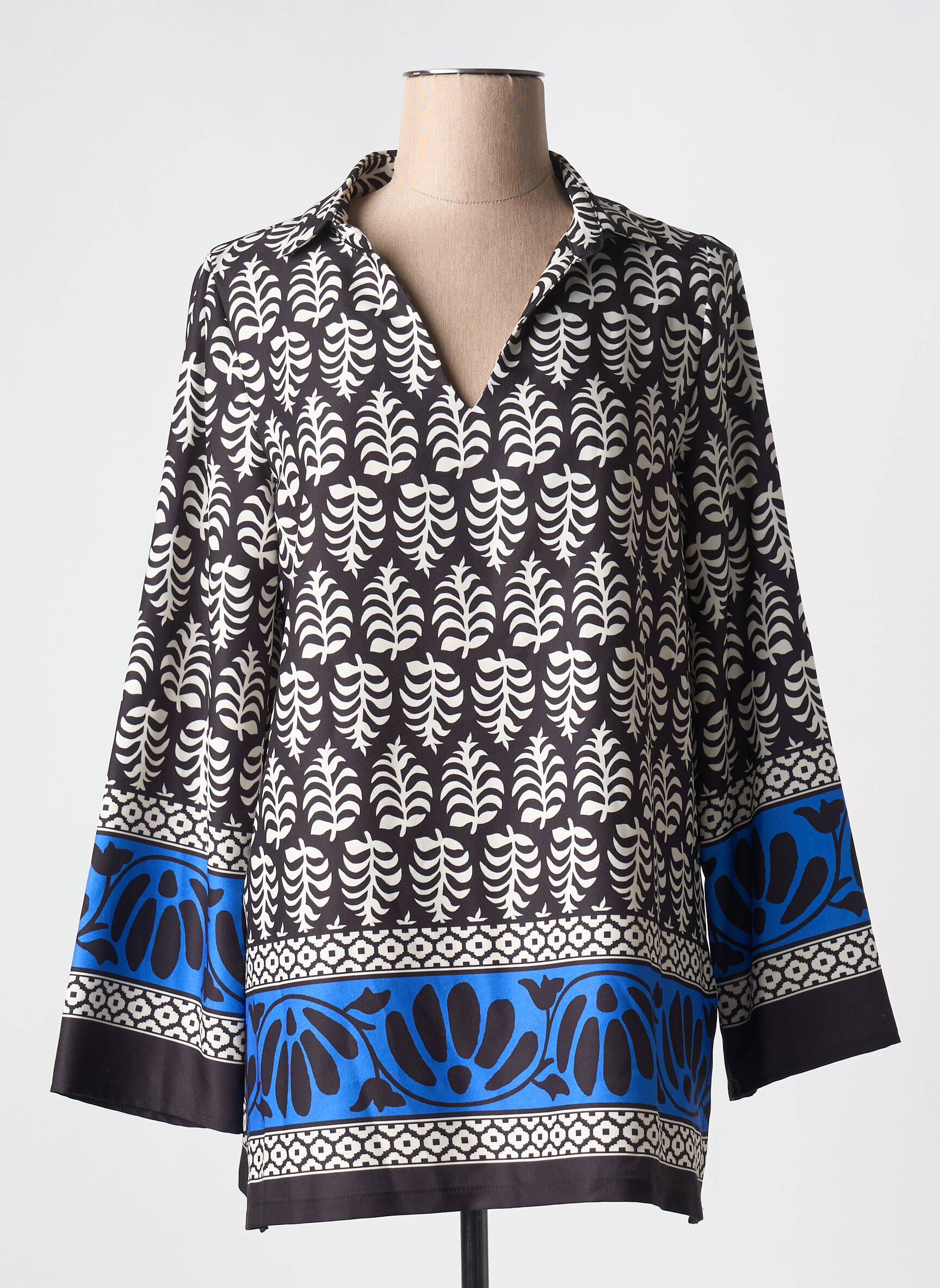 Craquez pour cette blouse AN II VITO à prix irrésistible, parfaite pour égayer votre dressing sans vous ruiner. Avec son imprimé graphique noir et blanc rehaussé de motifs bleu vif sur le bas des manches et l’ourlet, elle apporte une touche d’originalité tout en restant facile à porter au quotidien. Sa coupe légèrement ample et son col ouvert offrent un confort idéal tout en sublimant la silhouette, une véritable bonne affaire à saisir pour renouveler votre look sans compromis sur le style ou le budget.