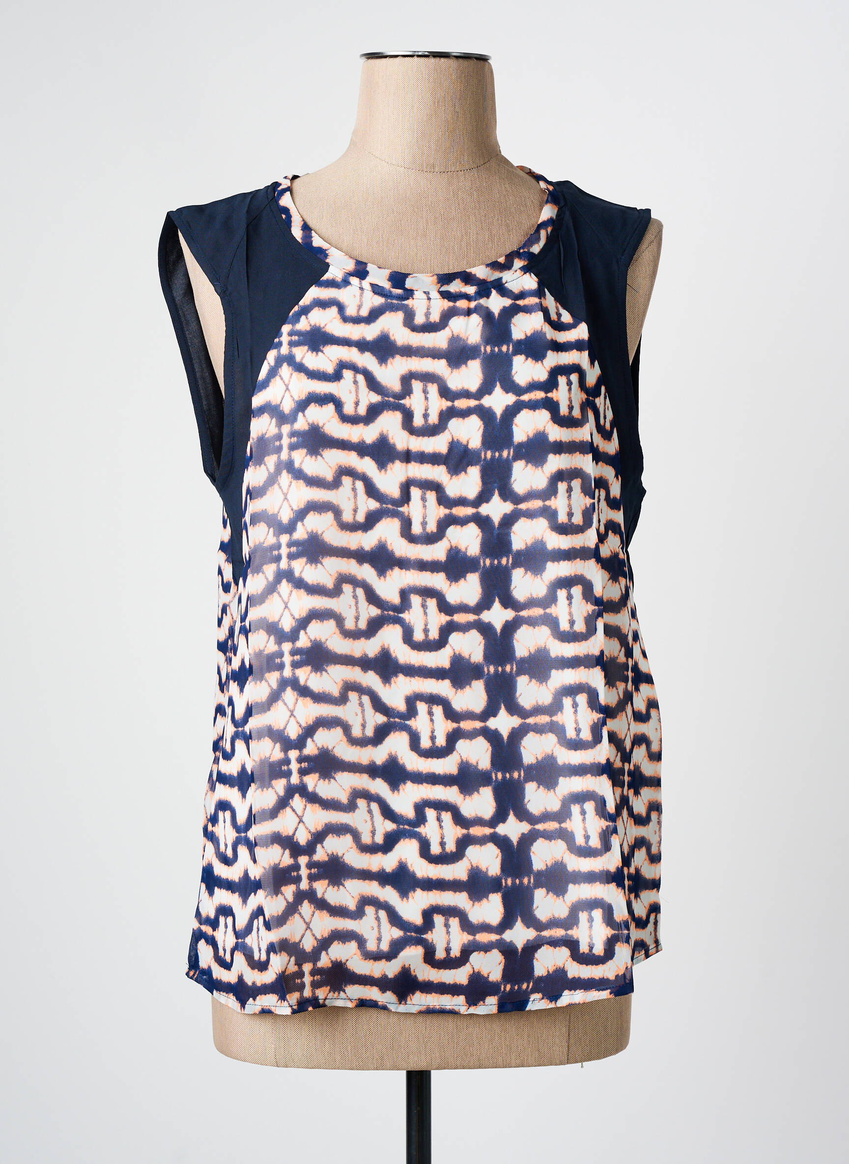 Profitez d’une vraie affaire avec cette blouse ARELINE pour femme, idéale pour celles qui veulent allier style et petit prix. Son imprimé graphique aux nuances bleu marine et blanc cassé apporte une touche d’originalité à vos tenues tout en restant facile à associer, tandis que sa coupe sans manches et ses épaules légèrement contrastées créent une silhouette moderne, parfaite pour sublimer votre quotidien sans casser votre budget.