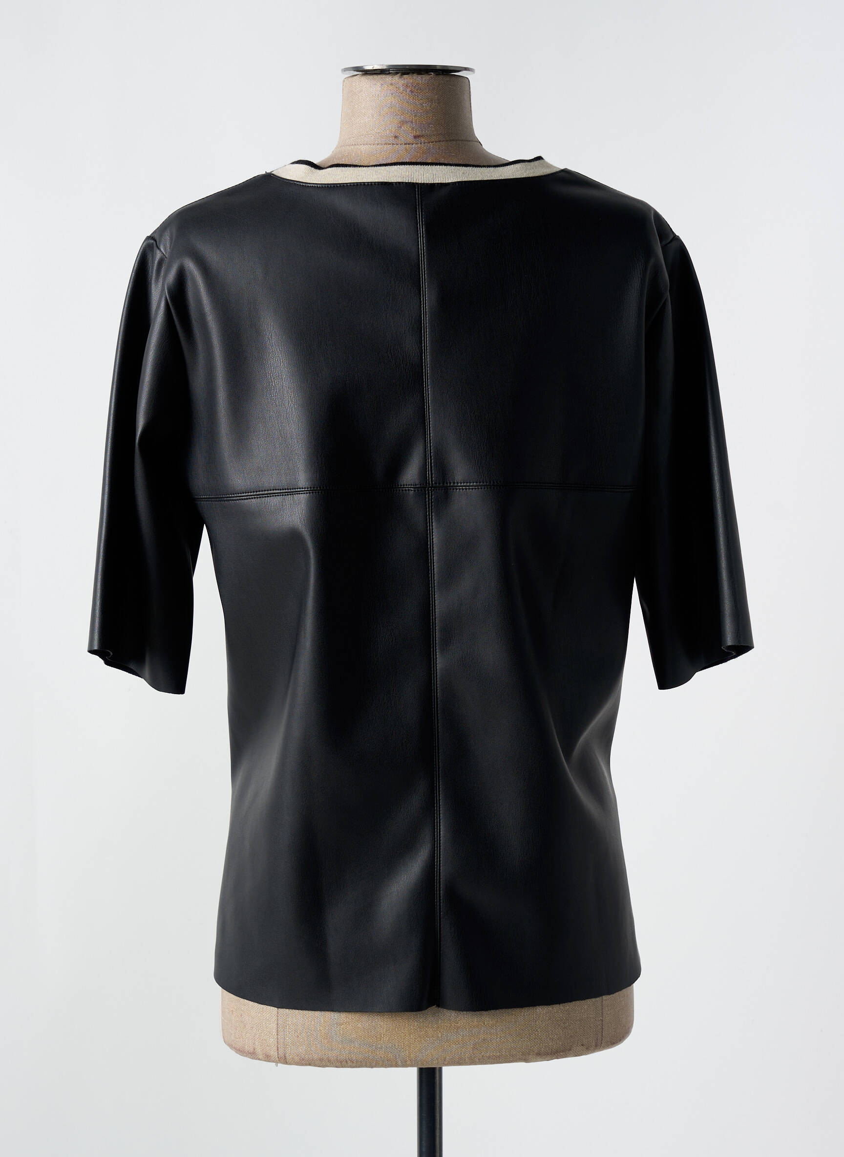 Osez la surprise avec ce T-shirt signé B.YU qui réinvente le classique en alliant une allure minimaliste et une matière qui évoque subtilement le cuir, offrant une silhouette moderne et élégante. Sa coupe droite et ses manches mi-longues apportent une touche contemporaine tandis que son col arrondi souligne délicatement le décolleté, faisant de ce modèle une pièce versatile à la fois chic et audacieuse.