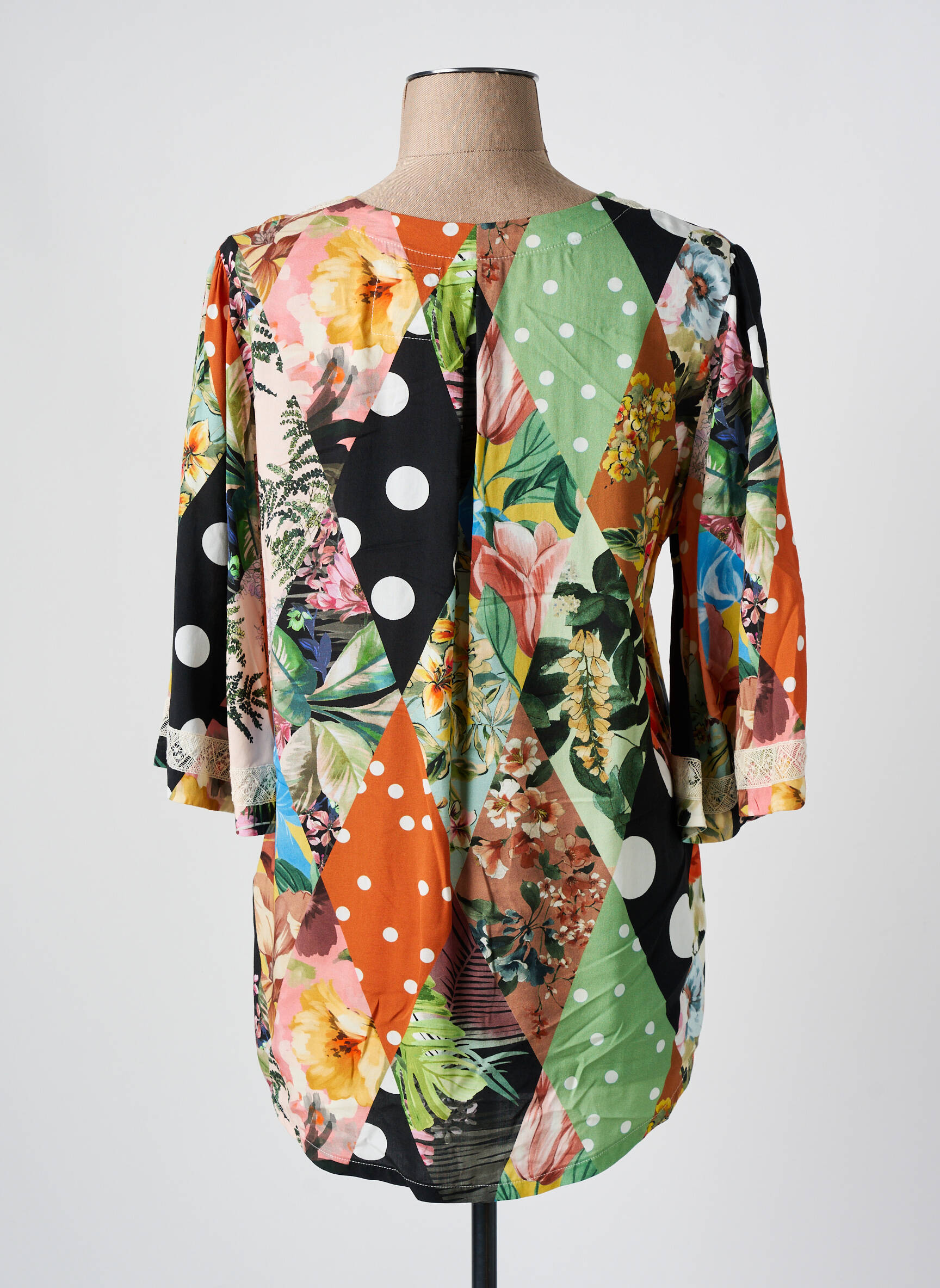 Craquez pour cette blouse CAP JULUCA pour femme à prix mini et offrez-vous une pièce unique et colorée sans vous ruiner, idéale pour dynamiser votre dressing avec style. Son imprimé patchwork floral et pois, mélangeant harmonieusement les couleurs vives et les motifs variés, apporte une touche de fraîcheur et d’originalité à toutes vos tenues. Les détails raffinés comme le col en V souligné par une fine dentelle et les manches trois-quarts légèrement amples accentuent son allure féminine et décontractée, parfaite pour celles qui veulent conjuguer tendance et économies.