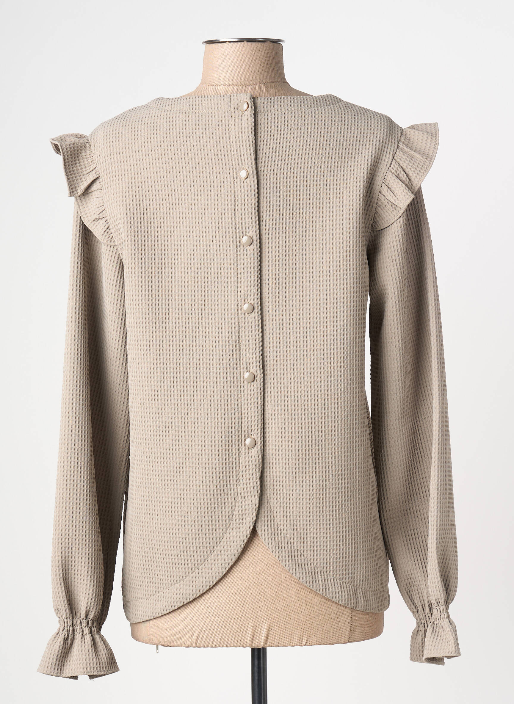 Craquez pour cette blouse CERISE BLUE à prix mini, idéale pour apporter une touche tendance et féminine à votre dressing sans vous ruiner. Son joli tissu texturé taupe sublimé par des volants délicats sur les épaules et sa coupe fluide avec un col en V apportent une note d’élégance discrète. C’est le bon plan parfait pour renouveler votre garde-robe avec style à petit prix.