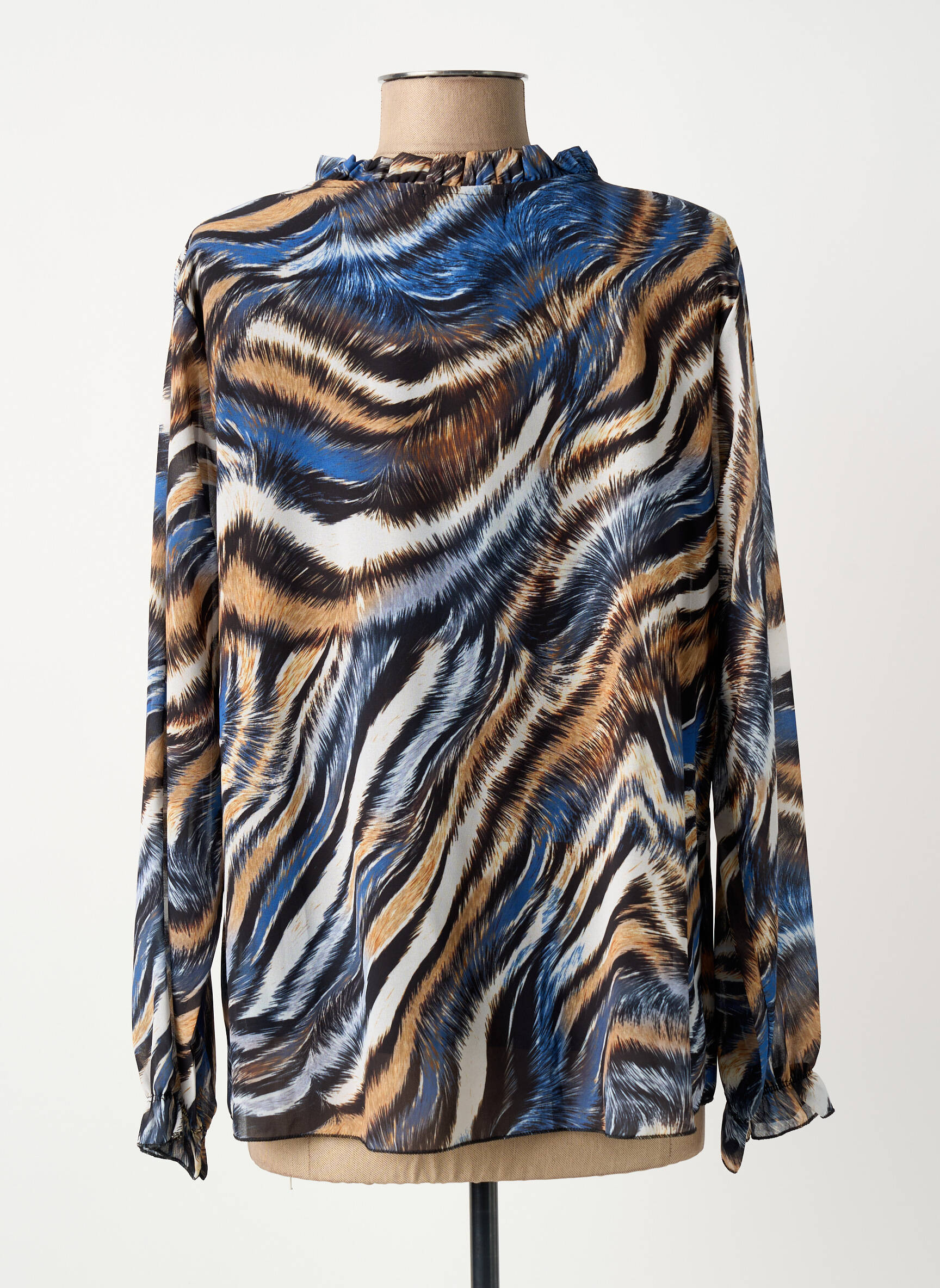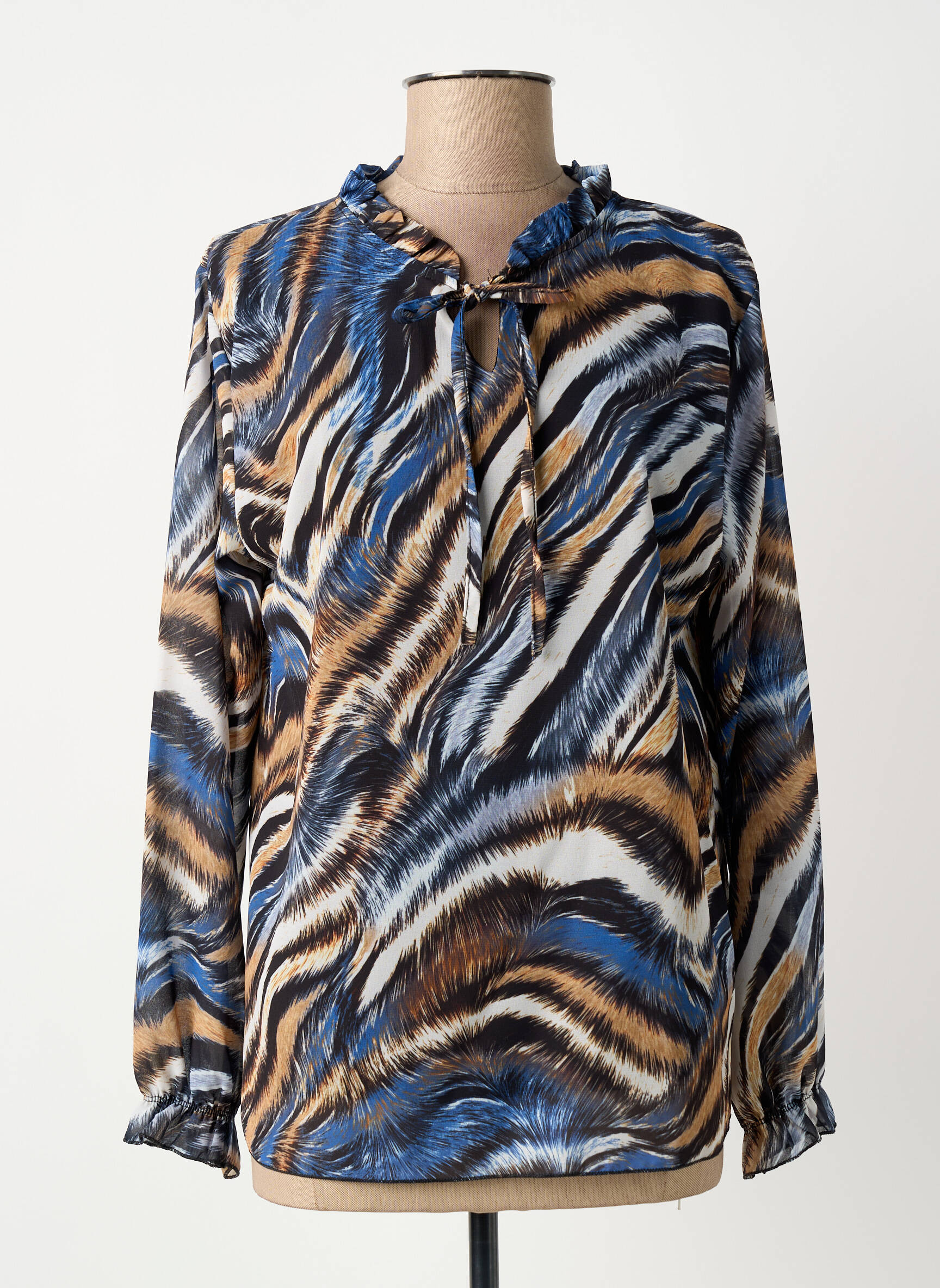 Craquez pour cette blouse COULEURS DU TEMPS pour femme, une véritable affaire à ne pas laisser passer pour toutes celles qui aiment allier style et petit prix. Son imprimé animalier aux nuances de bleu, marron et blanc offre une touche audacieuse à votre tenue, tandis que le col légèrement volanté avec lien à nouer apporte une note féminine et raffinée. C’est le bon plan mode parfait pour renouveler votre garde-robe sans vous ruiner.