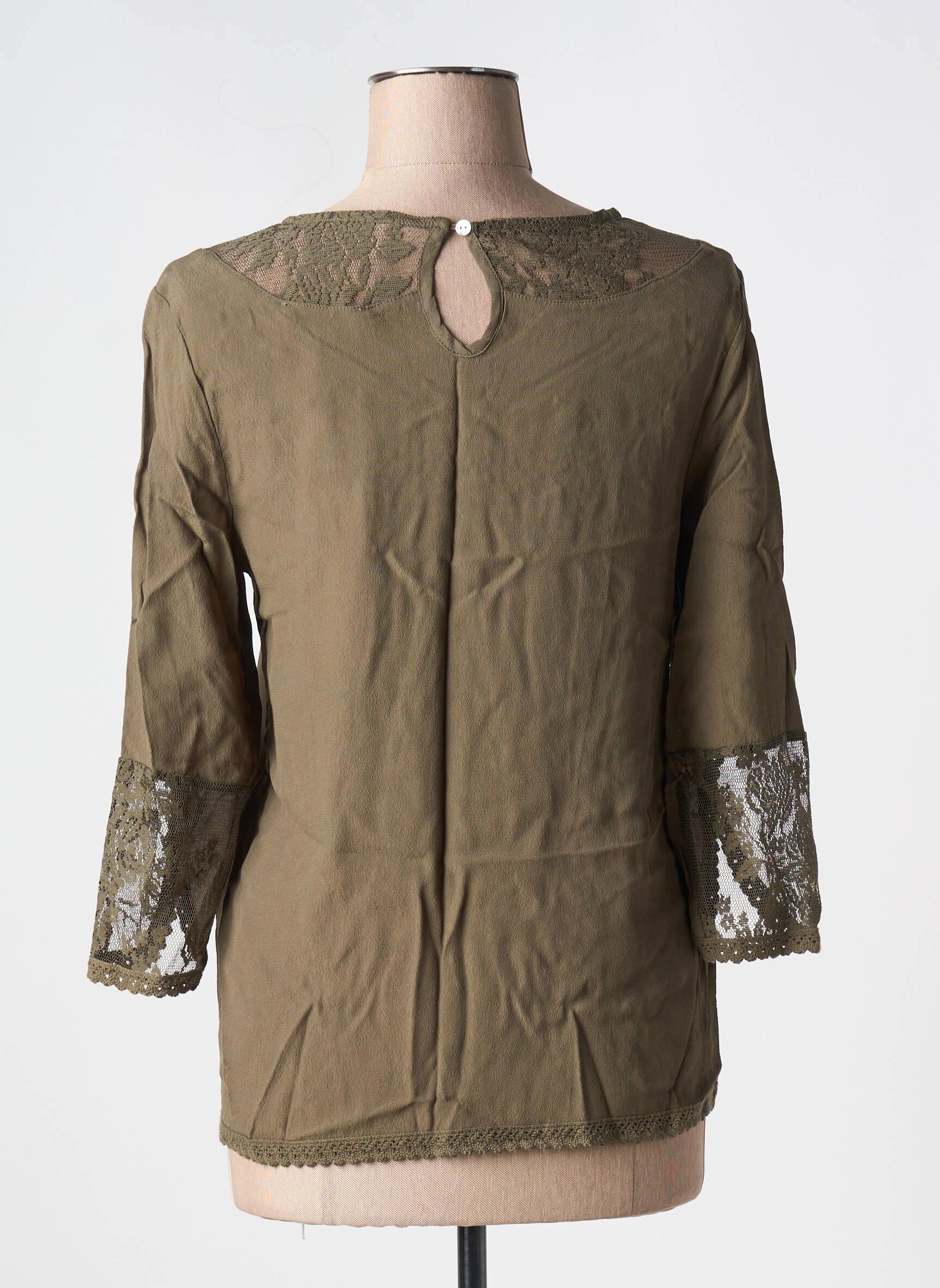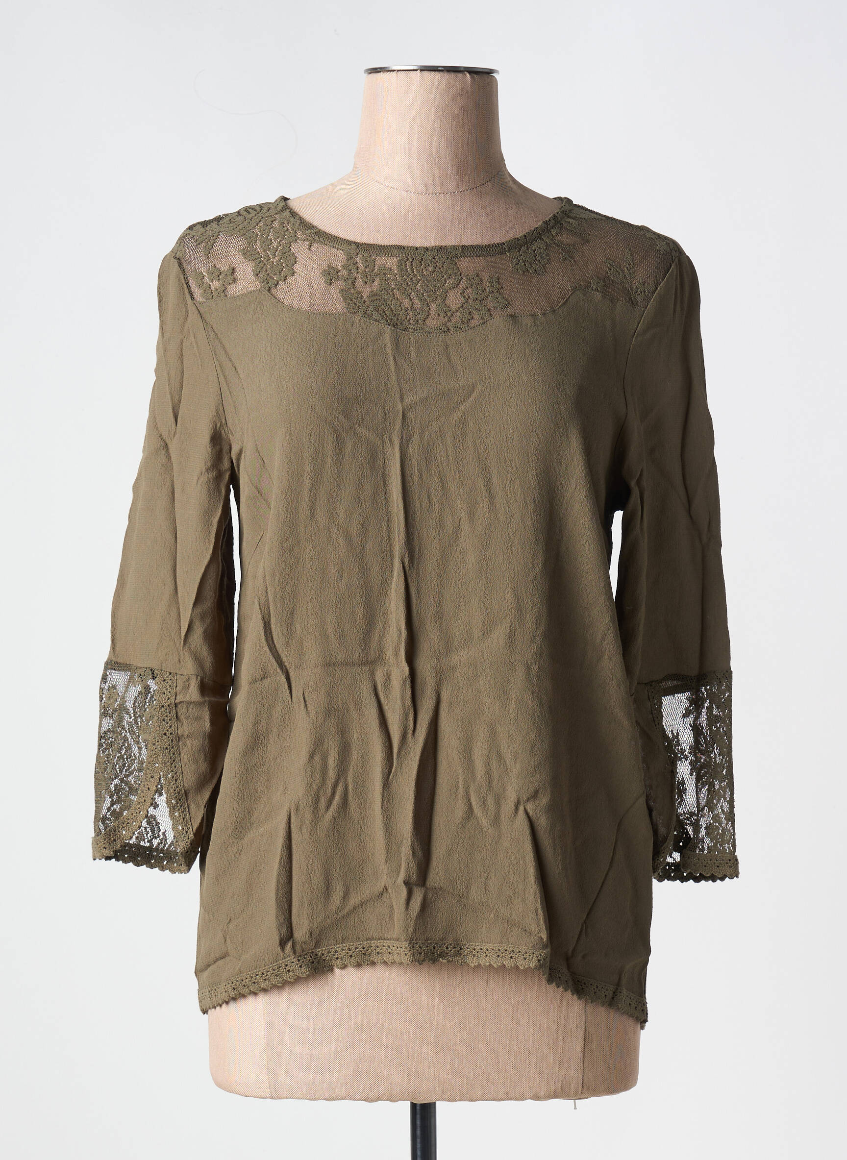 Craquez pour cette blouse CREAM pour femme à prix mini, idéale pour celles qui veulent se faire plaisir sans se ruiner. Avec son élégante couleur kaki et ses délicates incrustations de dentelle ajourée sur les manches et le décolleté, elle offre un look sophistiqué et tendance à prix cassé, parfaite pour rehausser toutes vos tenues du quotidien ou pour une soirée improvisée.