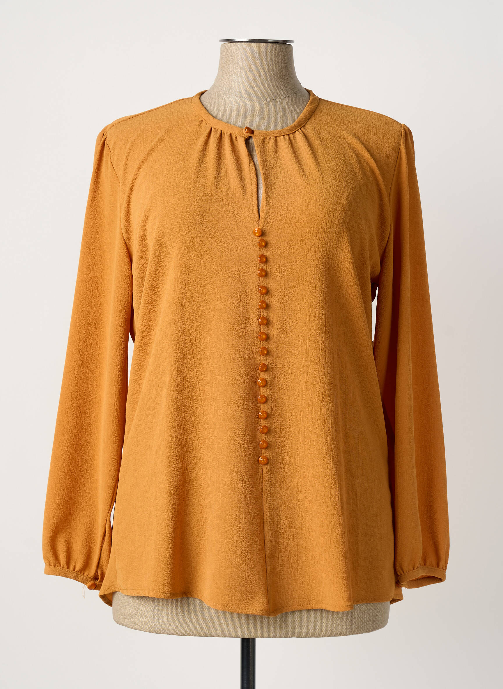 Profitez d’un superbe bon plan en craquant pour cette blouse FEMMES JE VOUS AIME, une pièce élégante à prix tout doux pour renouveler votre dressing sans vous ruiner. Sa couleur chaude et lumineuse apporte instantanément de la vitalité à votre look, tandis que la rangée de petits boutons sur le devant ajoute une touche de raffinement tout en douceur. Les manches longues légèrement bouffantes et le col rond subtilement froncé offrent un tombé fluide et confortable, idéal pour toutes les occasions. Cette blouse combine style et économie, le choix parfait pour celles qui recherchent la qualité à prix malin.