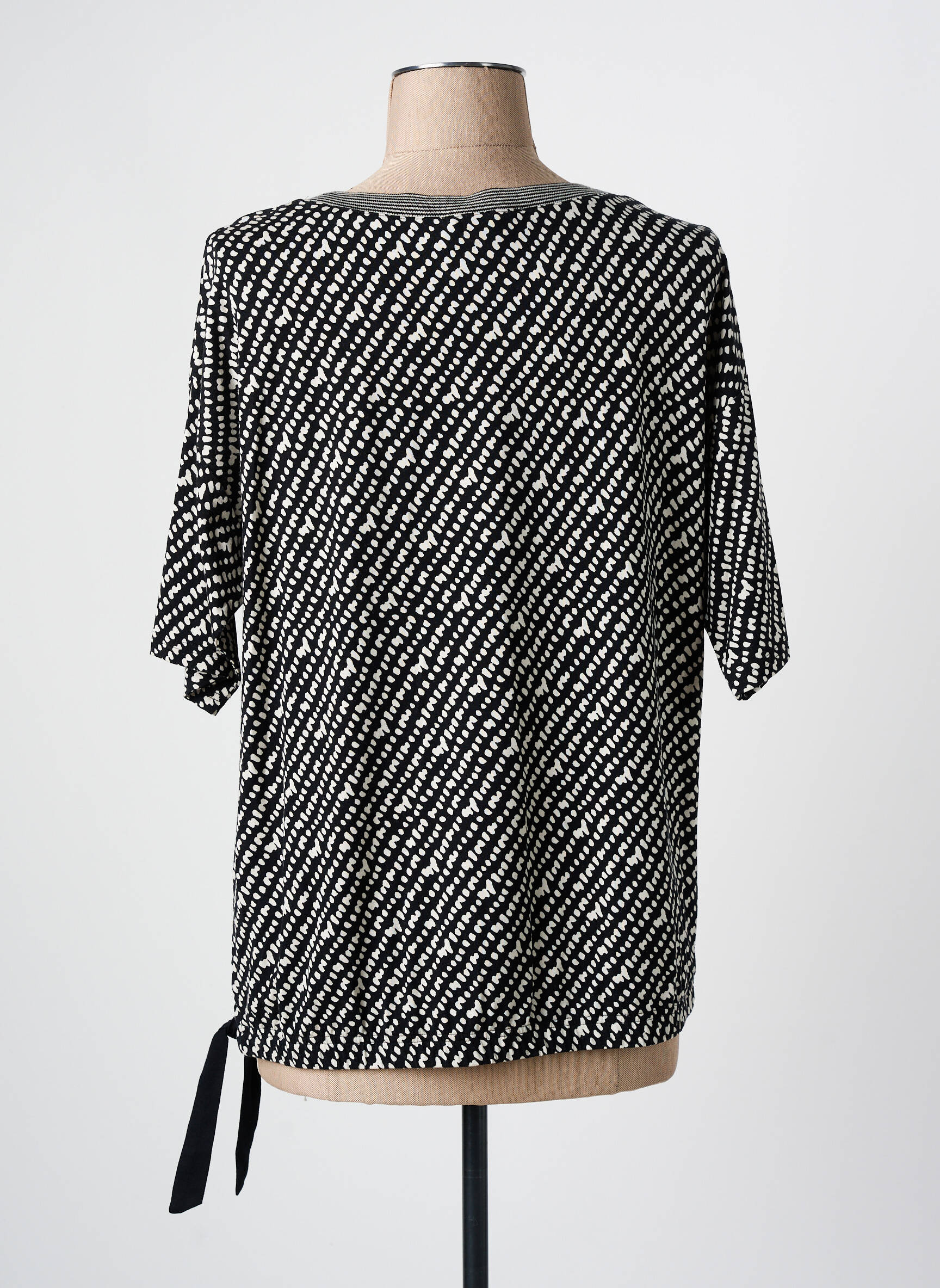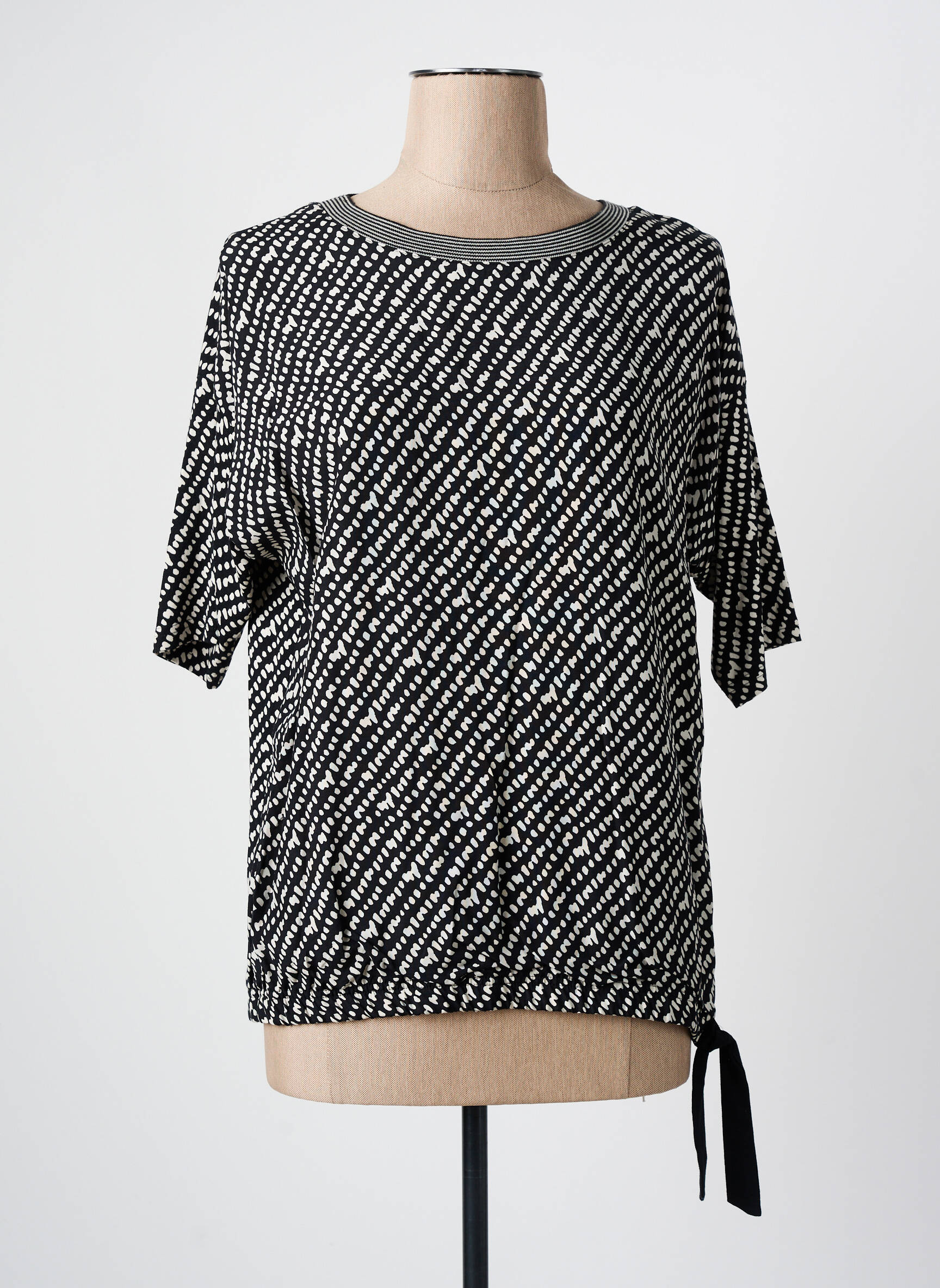 Profitez d'une affaire exceptionnelle avec cette blouse FRANK WALDER pour femme, parfaite pour booster votre dressing à prix mini. Son motif graphique noir et blanc apporte une touche moderne et dynamique à toutes vos tenues, tandis que la petite finition nouée sur le bas lui confère une note féminine et tendance. Sa coupe fluide et confortable est idéale pour une allure décontractée chic sans se ruiner.