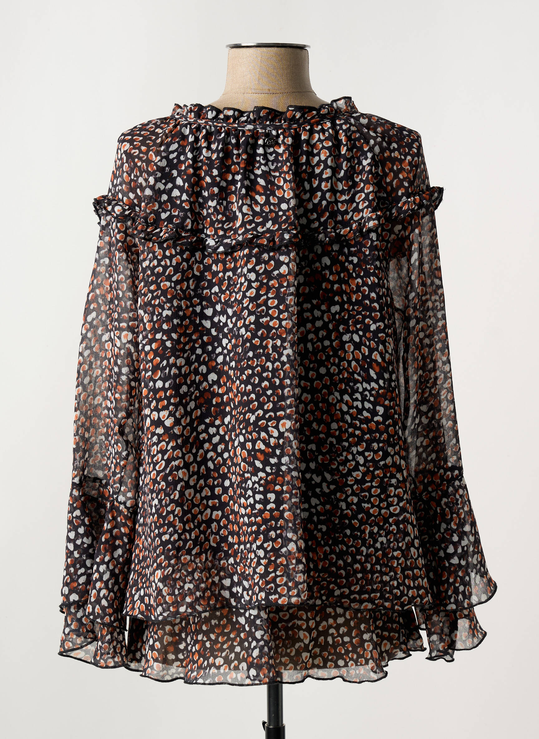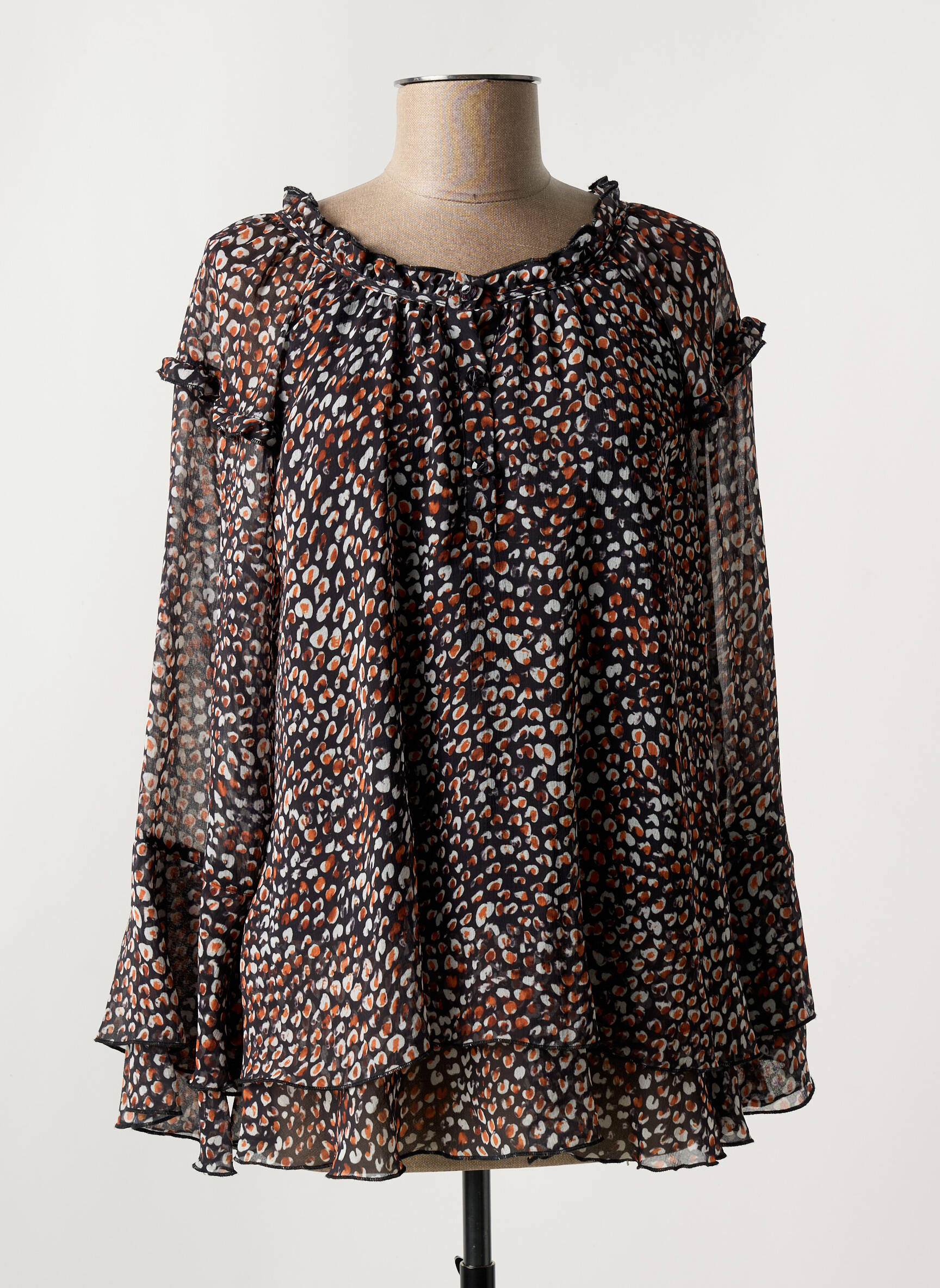 Profitez d’un bon plan mode avec cette blouse FRED SABATIER pour femme, à prix tout doux, idéale pour renouveler votre dressing sans vous ruiner. Son tissu léger et fluide dévoile un imprimé multicolore subtil qui apporte une touche de modernité à votre tenue, tandis que la coupe ample et les détails volantés offrent une allure élégante et décontractée. Cette pièce est parfaite pour celles qui aiment combiner confort et style à petit prix.