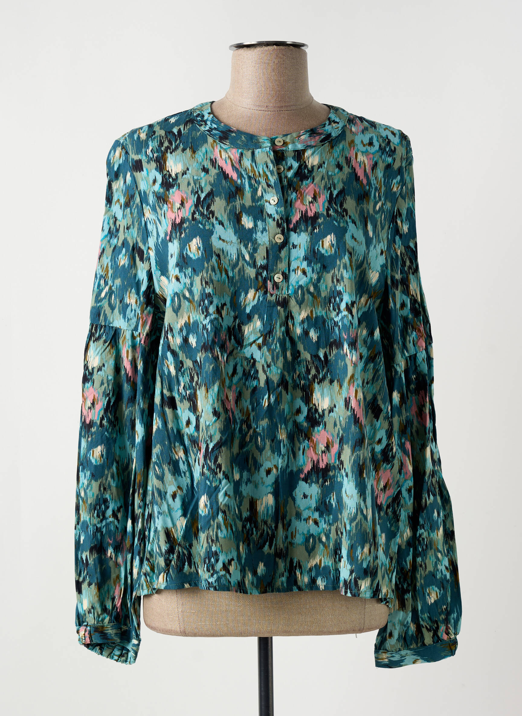 Craquez pour cette blouse GARCIA pour femme et profitez d’un style tendance à petit prix. Son imprimé coloré mêle harmonieusement des tons bleu-vert et des touches florales, apportant une touche d’originalité à votre tenue tout en restant facile à assortir. Avec sa coupe fluide et ses manches longues légèrement bouffantes, elle offre un confort optimal et un look moderne, parfait pour donner du peps à votre quotidien sans vous ruiner.