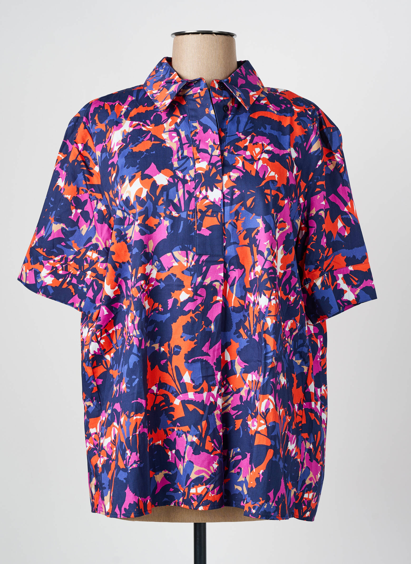 Profitez d'une offre exceptionnelle sur cette blouse femme signée GERRY WEBER qui allie style et économie. Son imprimé dynamique mélange des tons vibrants de bleu, rose, orange et violet pour un résultat moderne et pétillant, tandis que sa coupe ample et ses manches courtes offrent un confort idéal au quotidien. Avec son col classique et ses détails soignés, c’est la pièce parfaite à petit prix pour dynamiser votre garde-robe sans vous ruiner.