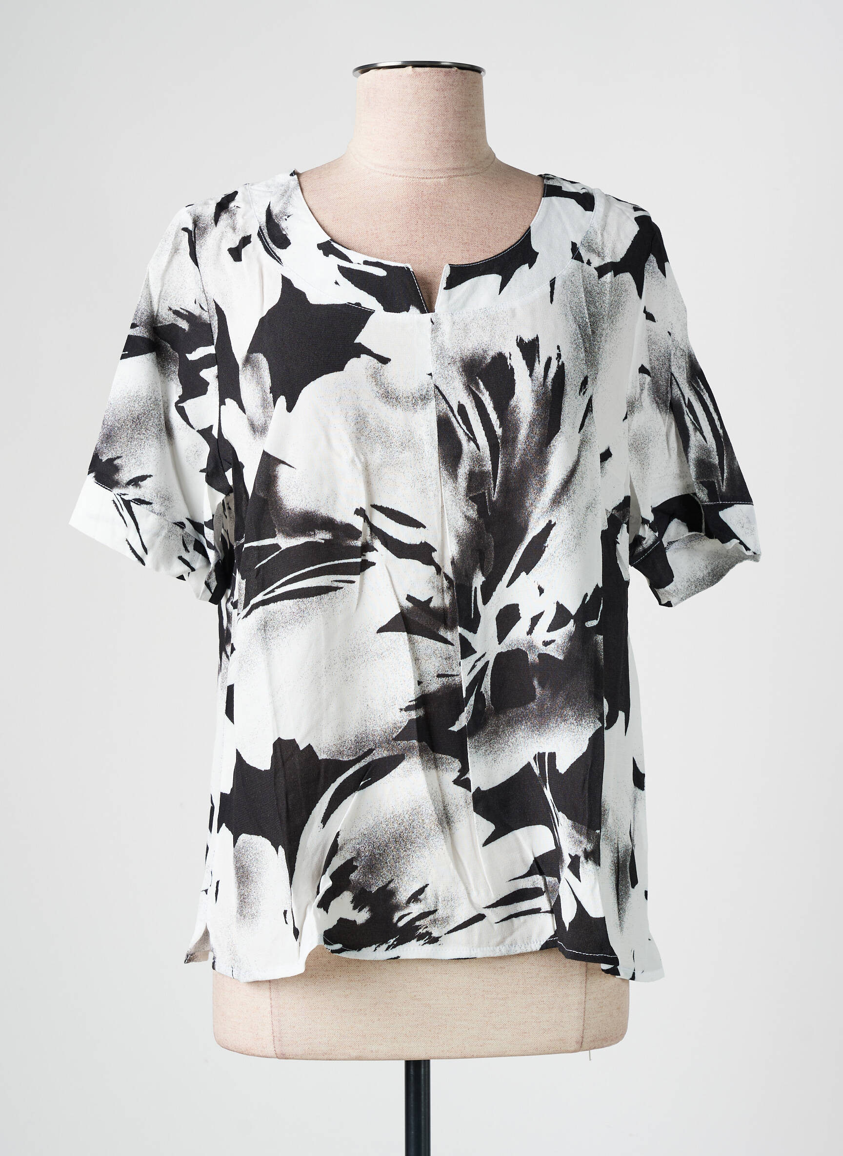 Profitez d’une belle opportunité pour booster votre garde-robe avec cette blouse GRIFFON pour femme à prix mini, idéale pour celles qui recherchent style et économies. Son motif noir et blanc abstrait apporte une touche artistique à toutes vos tenues, tandis que la coupe fluide et l’encolure arrondie assurent un confort au quotidien, parfait pour moderniser votre look sans vous ruiner.