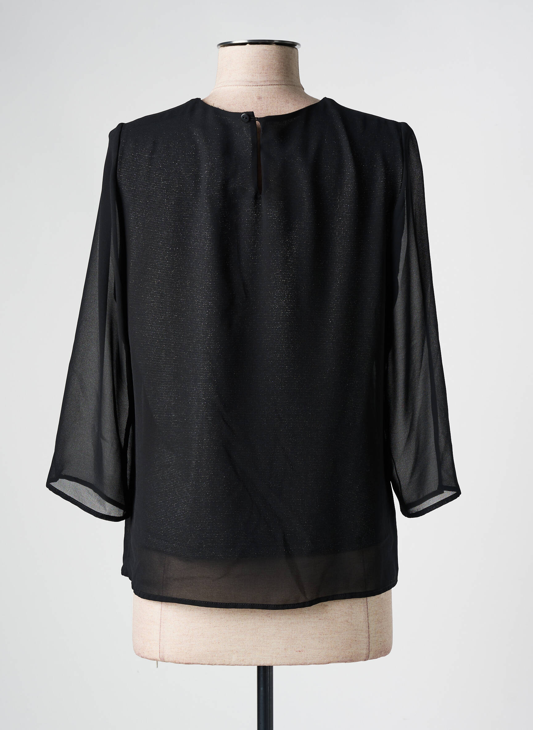 Craquez pour cette blouse GUY DUBOUIS pour femme, à prix doux, parfaite pour apporter une touche d’élégance sans vous ruiner. Son tissu noir légèrement transparent, sublimé par des manches longues fluides et une encolure ornée de petits boutons dorés, offre une allure raffinée et tendance qui s’adapte à toutes vos occasions. Saisissez vite ce bon plan mode qui allie chic et petit prix !