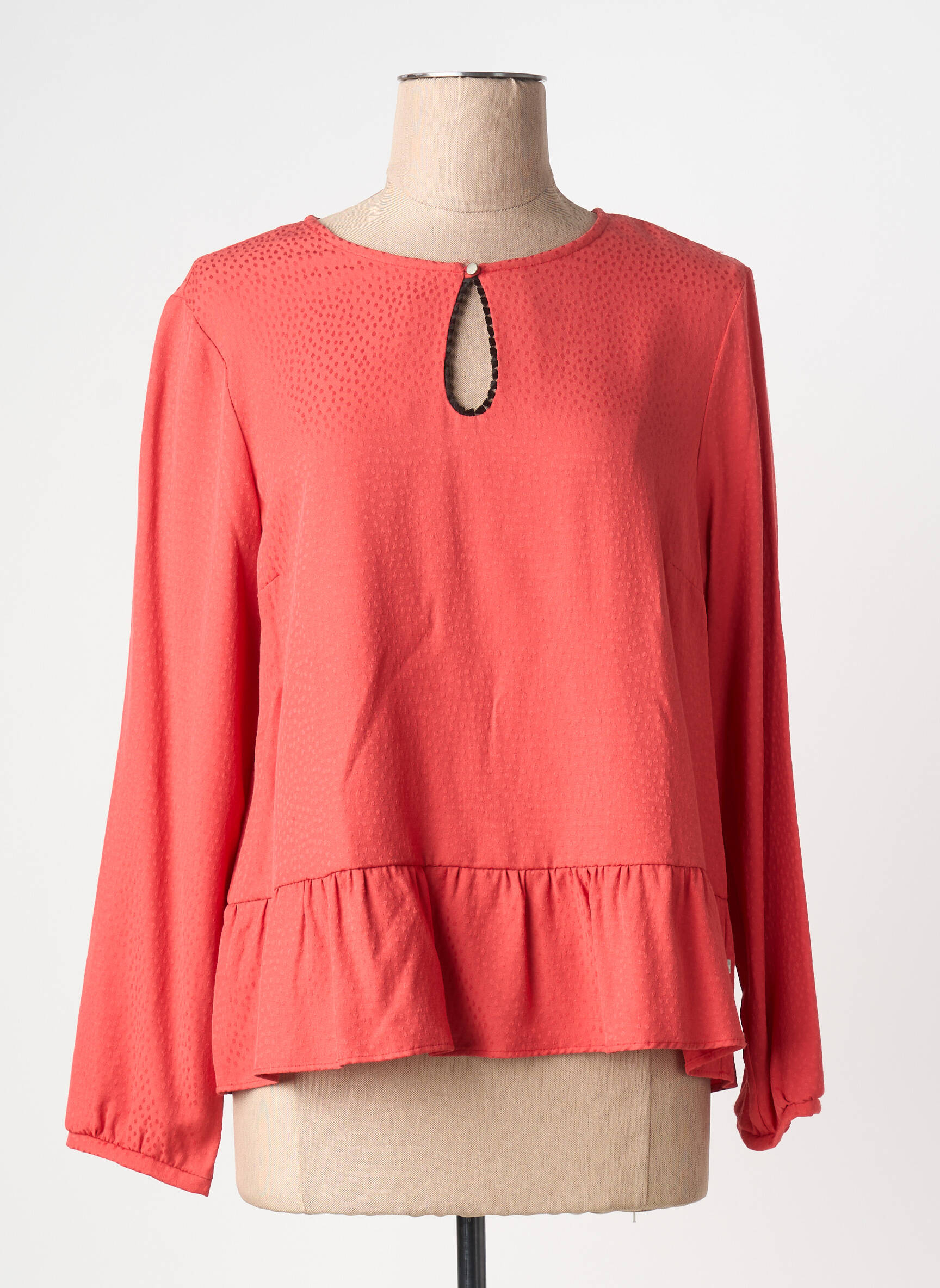 Craquez pour cette blouse de la marque I.CODE by IKKS, parfaite pour apporter une touche de couleur tendance à votre dressing sans vous ruiner. Sa nuance corail illumine instantanément la silhouette, tandis que le détail goutte à l’encolure et son bas volanté apportent une note féminine très actuelle. Sa coupe fluide et ses manches longues en font un incontournable facile à porter en toute occasion, à prix mini pour un effet maxi?!