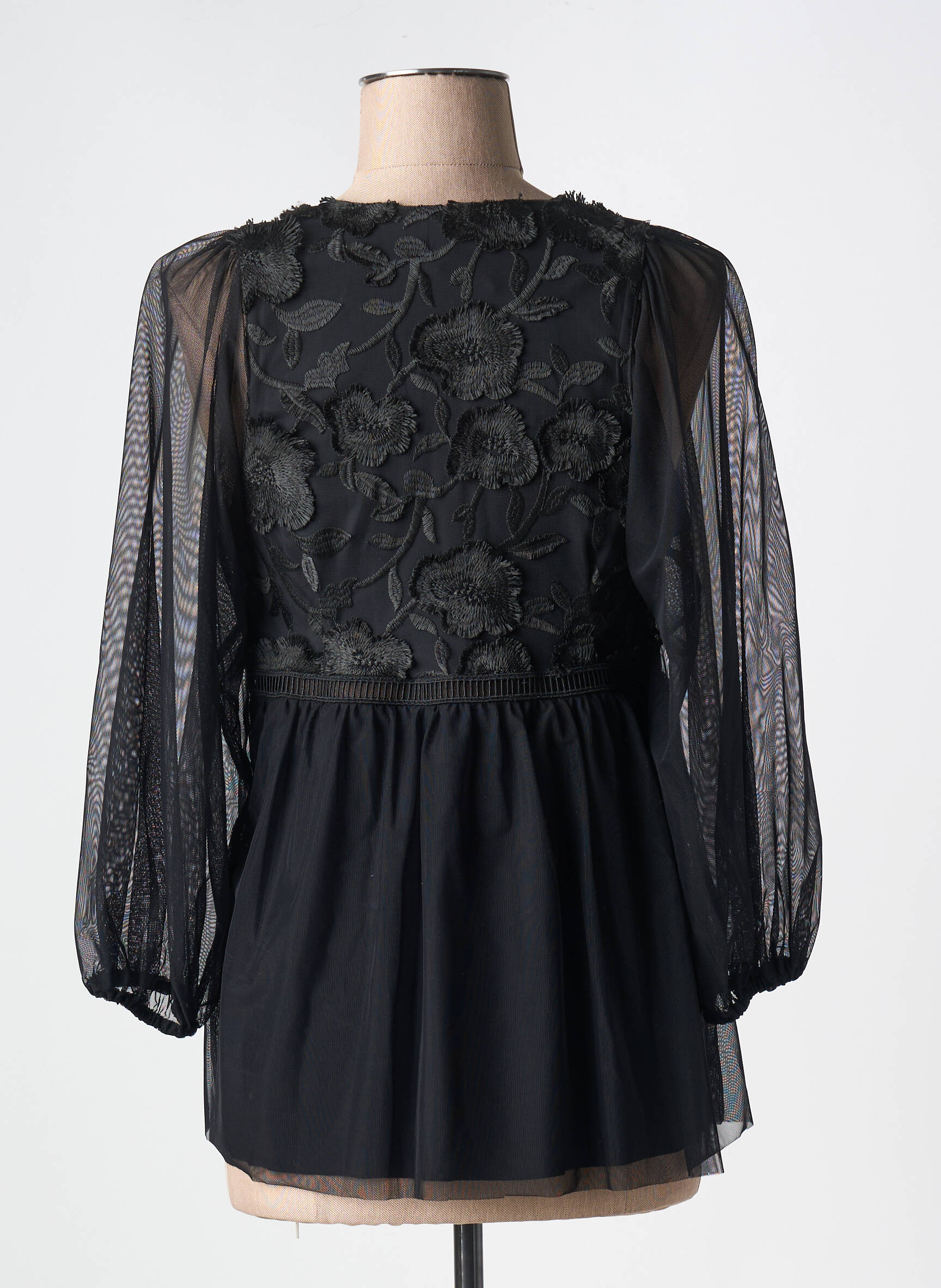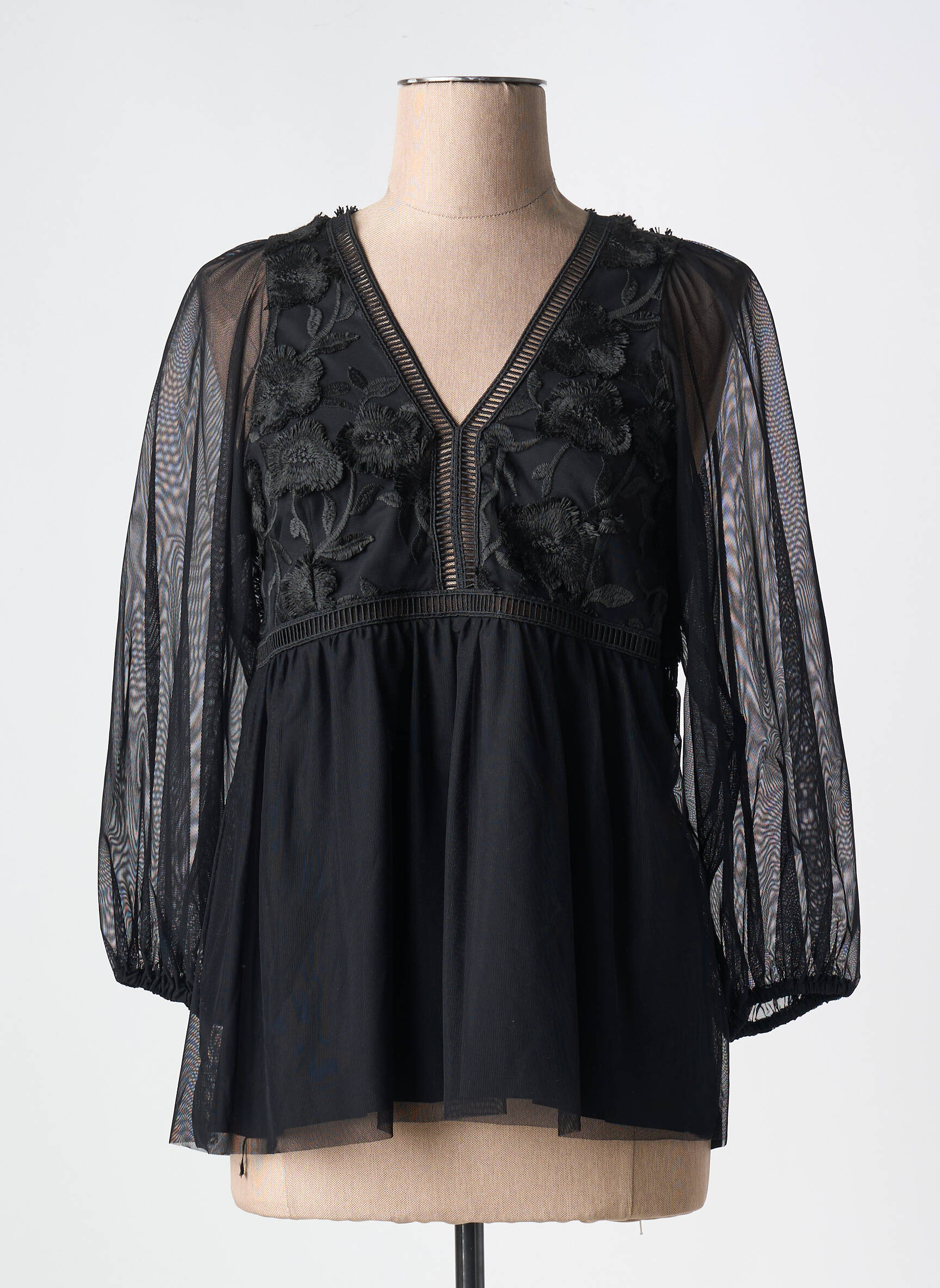 Craquez pour cette blouse INDIES pour femme, une pièce élégante à prix irrésistible pour toutes les amatrices de bonnes affaires. Son voile noir délicat et légèrement transparent sur les manches apporte une touche raffinée, tandis que le buste se distingue par des broderies florales en relief qui subliment le décolleté en V. La coupe fluide, associée à un jeu de transparence subtil, assure confort et féminité en toutes occasions, pour un look sophistiqué sans compromis sur votre budget.