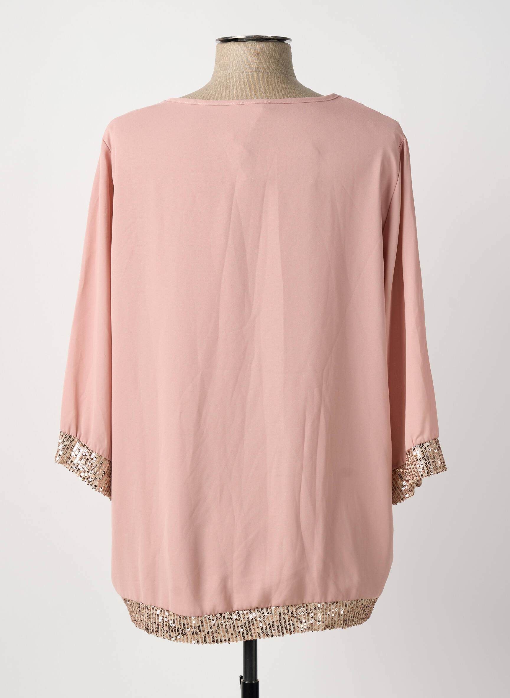 Profitez d’un prix tout doux pour cette blouse féminine de la marque JAZZ qui séduit avec sa teinte rose poudré très actuelle et sa coupe fluide ultra confortable, parfaite pour tous les jours. Les finitions pailletées dorées au bas des manches et à l’ourlet apportent une touche de brillance qui fait la différence sans alourdir la silhouette. Ce modèle chic et simple à petit prix est un vrai bon plan pour enrichir votre garde-robe avec élégance, sans vous ruiner.